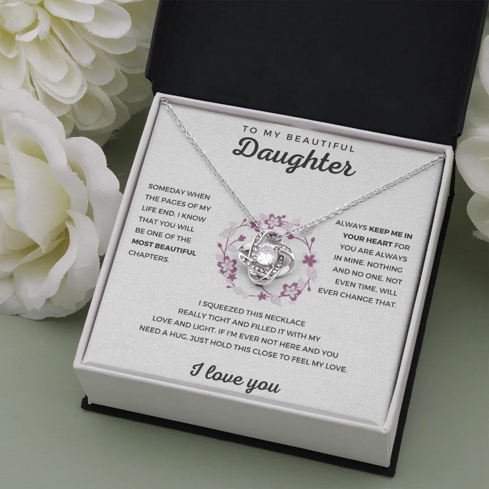 To My Beautiful Daughter Love Knot Necklace "Always Keep Me in Your Heart"