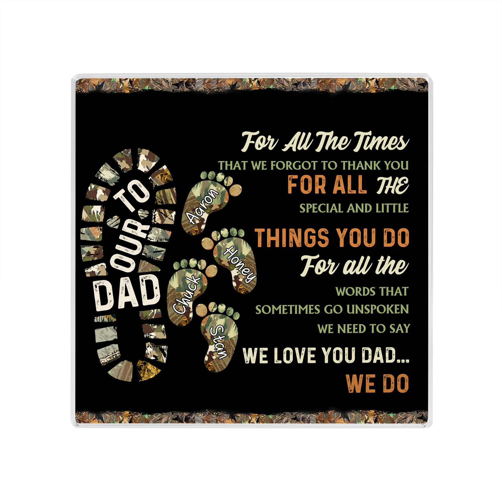 To My Dad Acrylic Square Keepsake Custom 4 Names Baby Feet Rectangle Plaque Father's Day Gift - For All The Times That I Forgot To Thank You