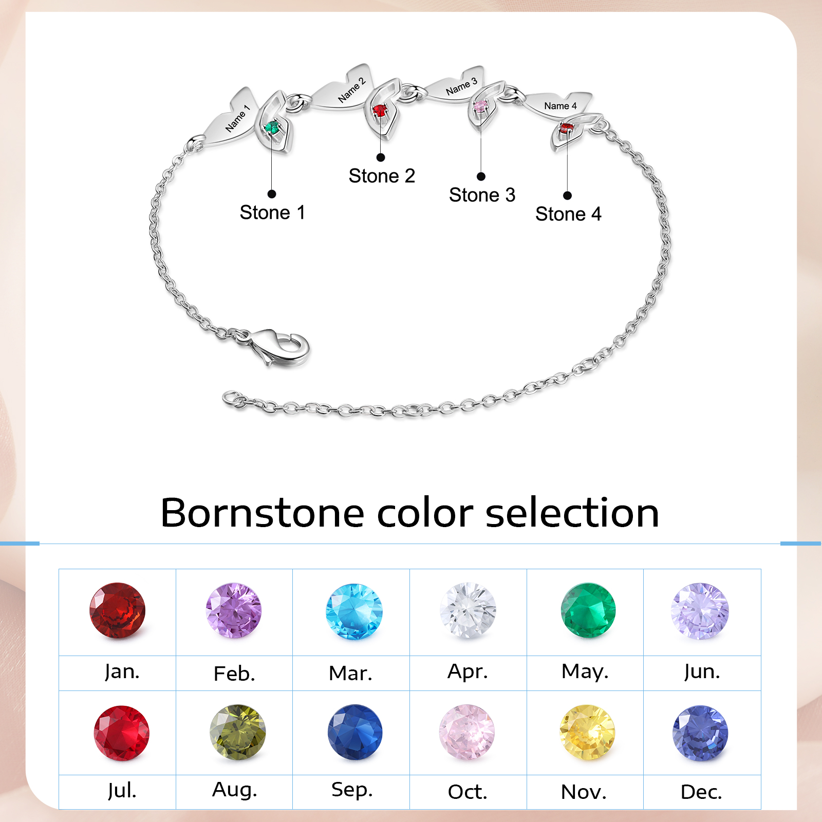 Personalized Butterflies Charm Bracelet Custom 4 Names & Birthstones Bracelet