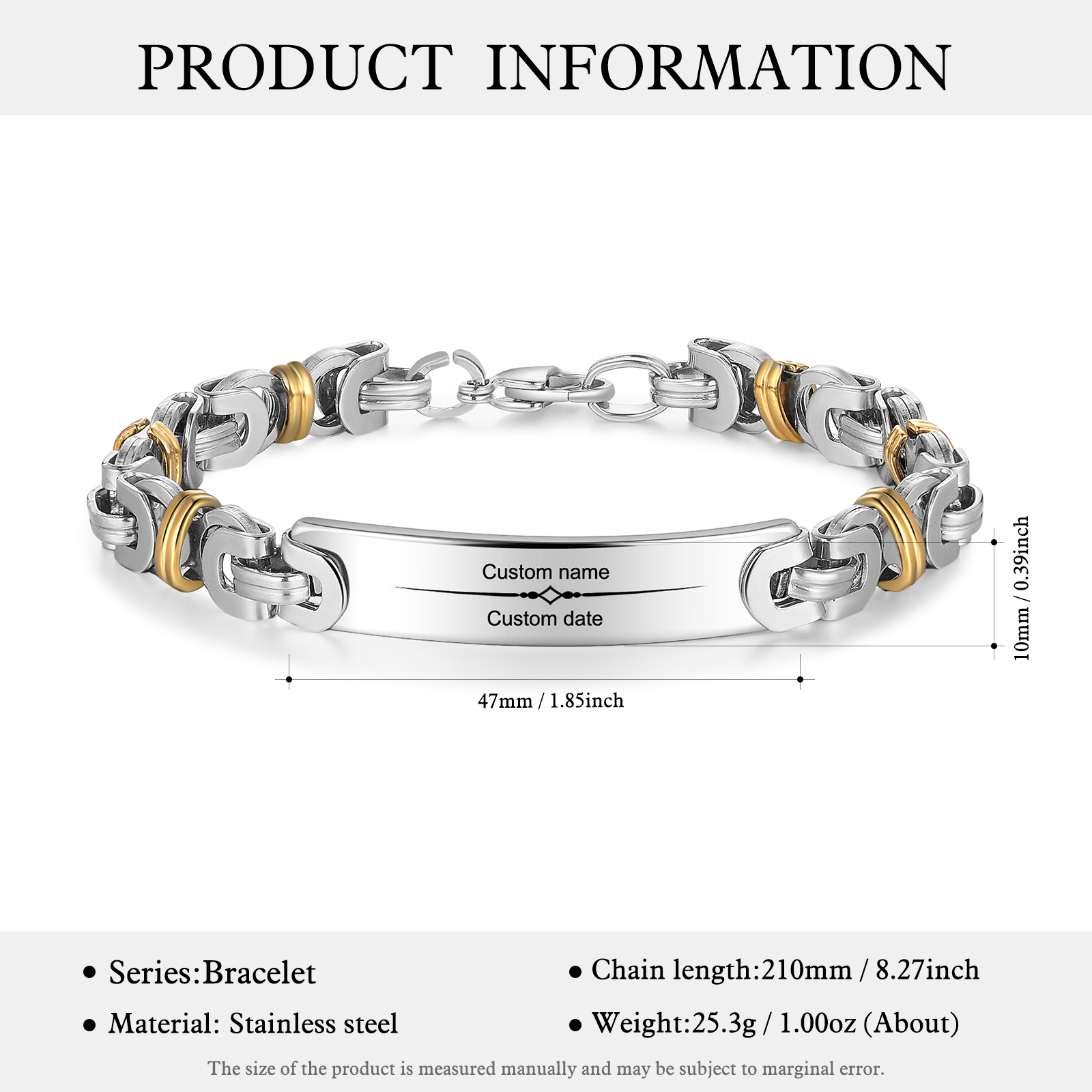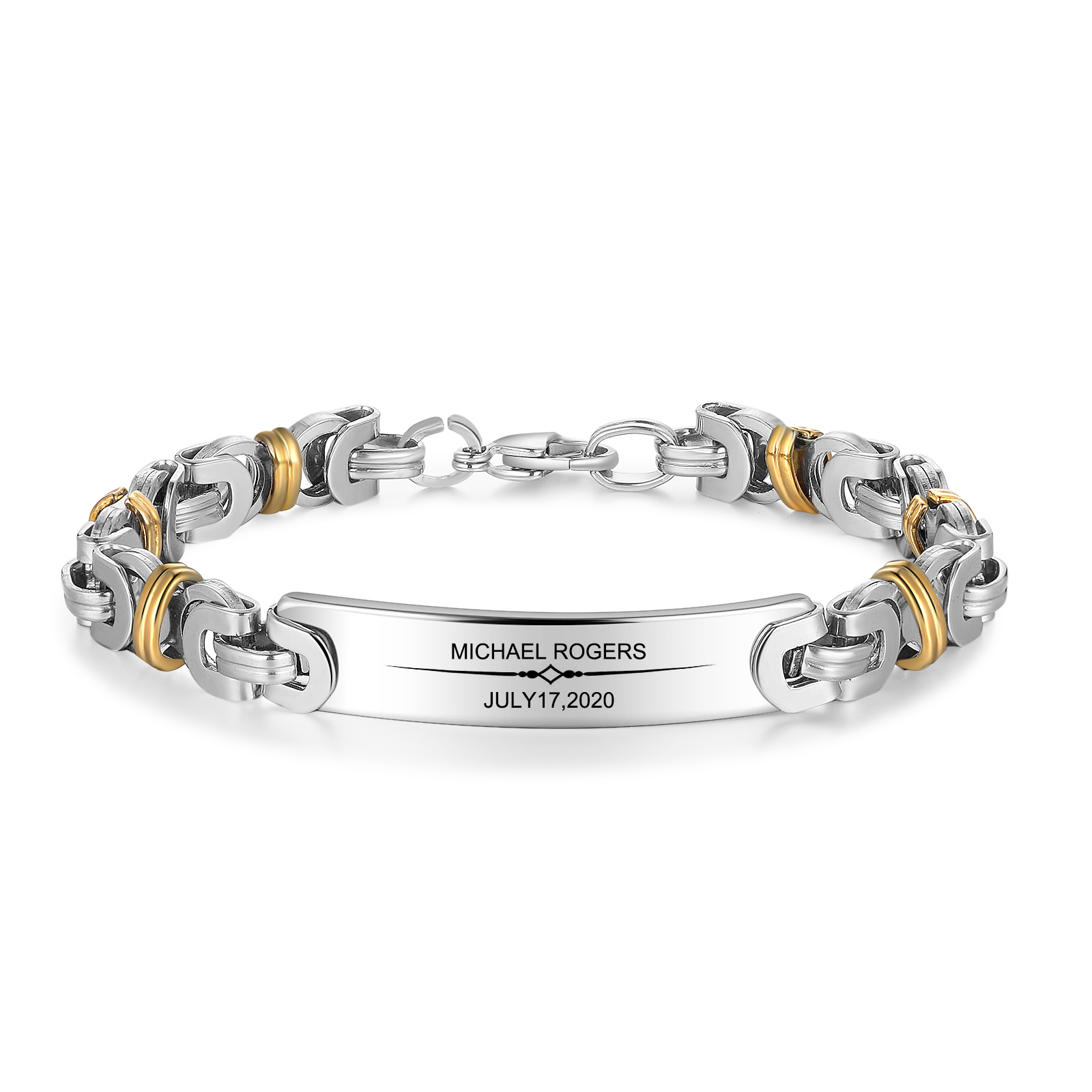 Personalized Mens ID Bar Bracelet Custom Text & Date Bangle Bracelet