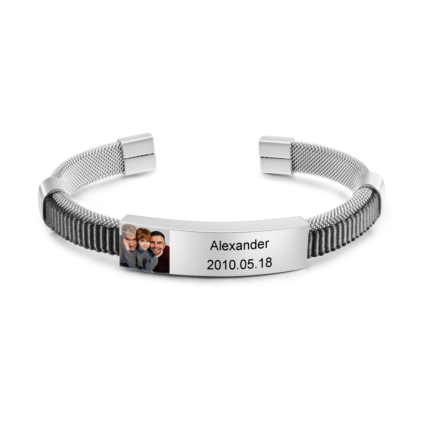 Personalized Photo Bangle Bracelet Engraved Text ID Bar Wristband Bracelet for Men