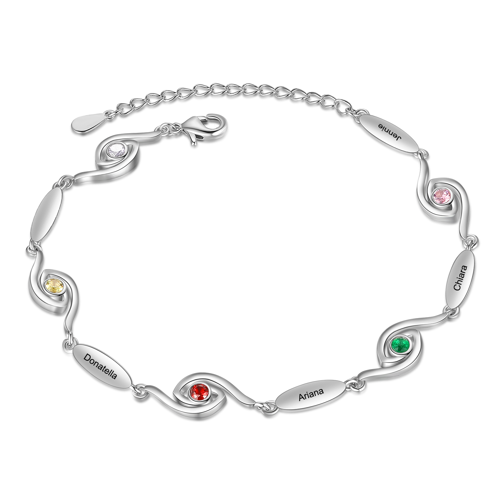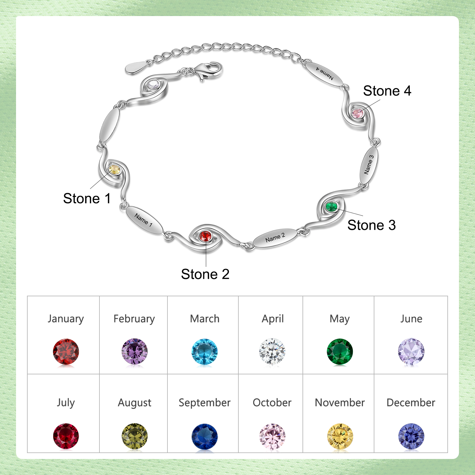 Personalized Evil Eye Bracelet with 4 Birthstones Engraved 4 Names Women Bracelet