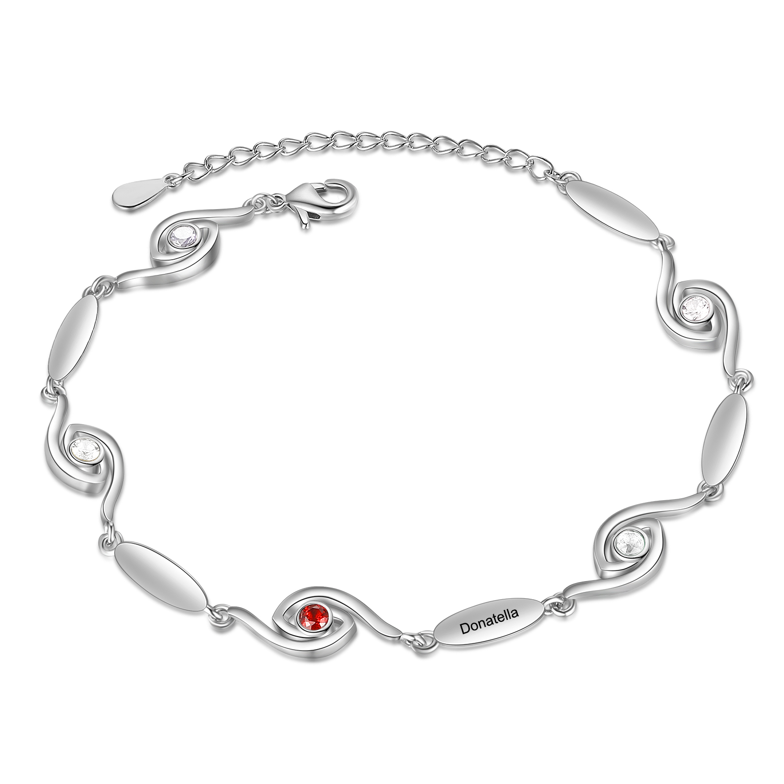 Personalized Evil Eye Bracelet with 1 Birthstone Engraved 1 Name Women Bracelet