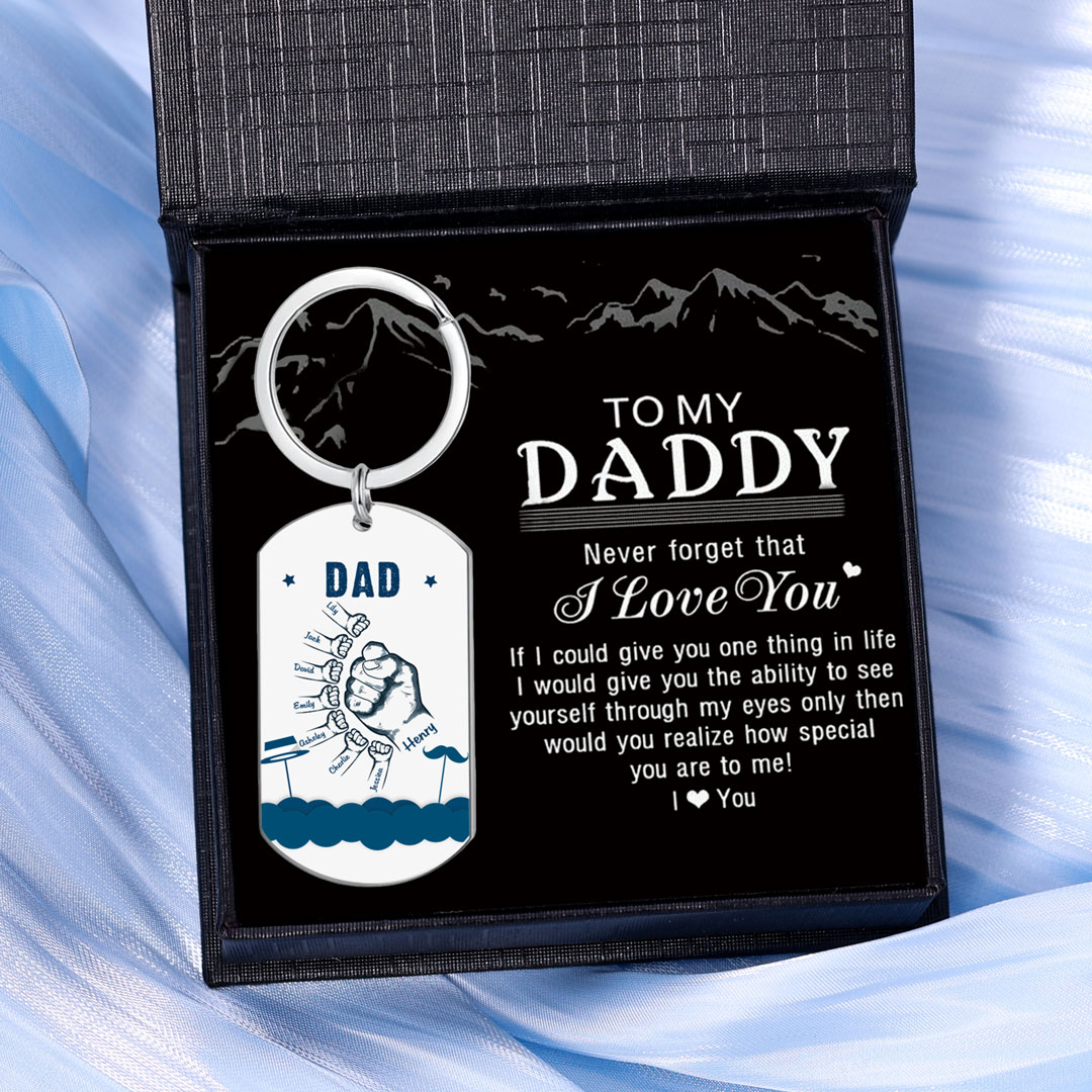 Custom 6 Names & 1 Text Keychain Personalized Fist Bump Keychain Father's Day Gifts for Dad