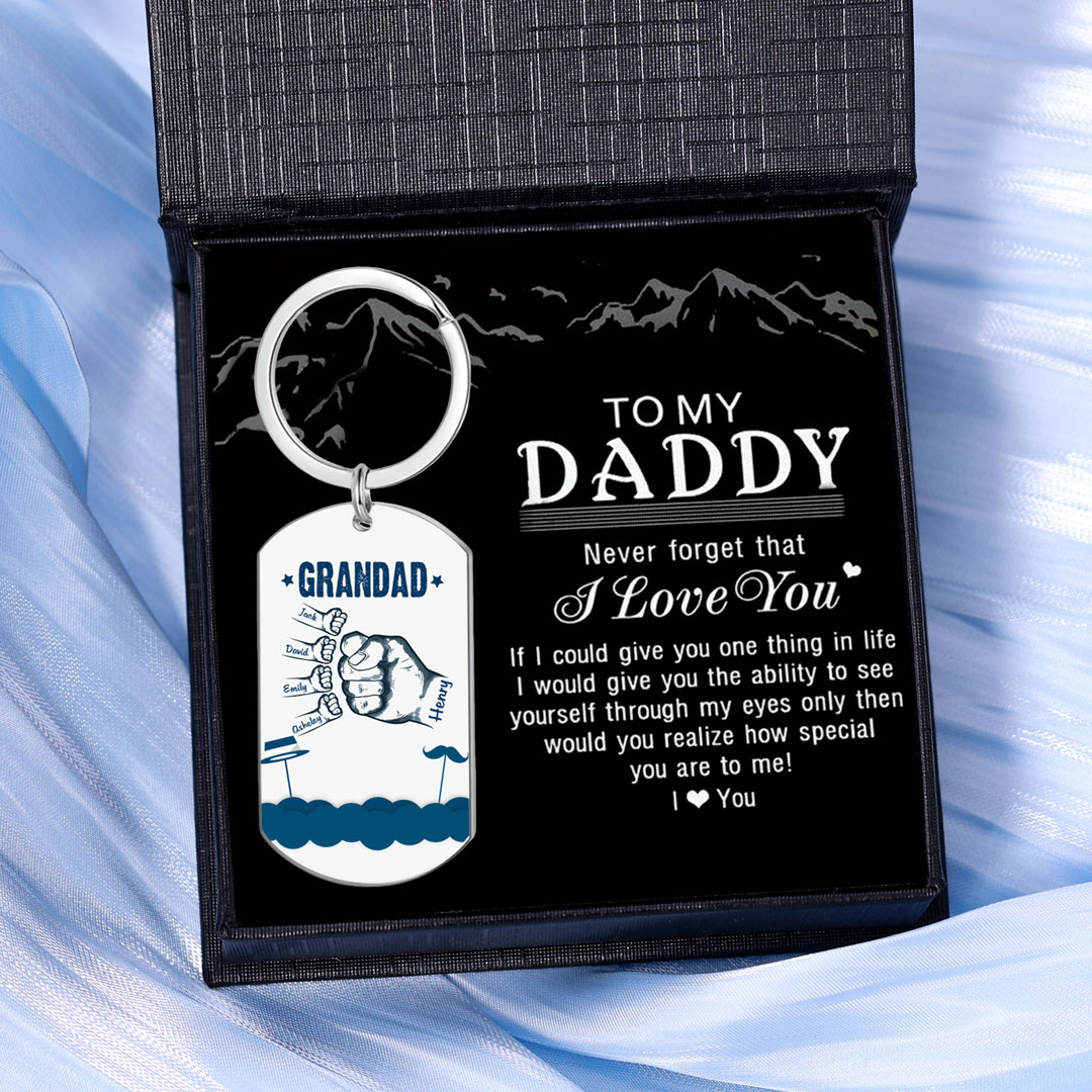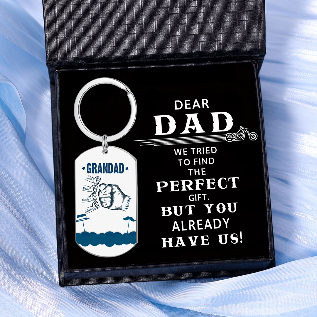Custom 5 Names & 1 Text Keychain Personalized Fist Bump Keychain Father's Day Gifts for Grandpa/Dad