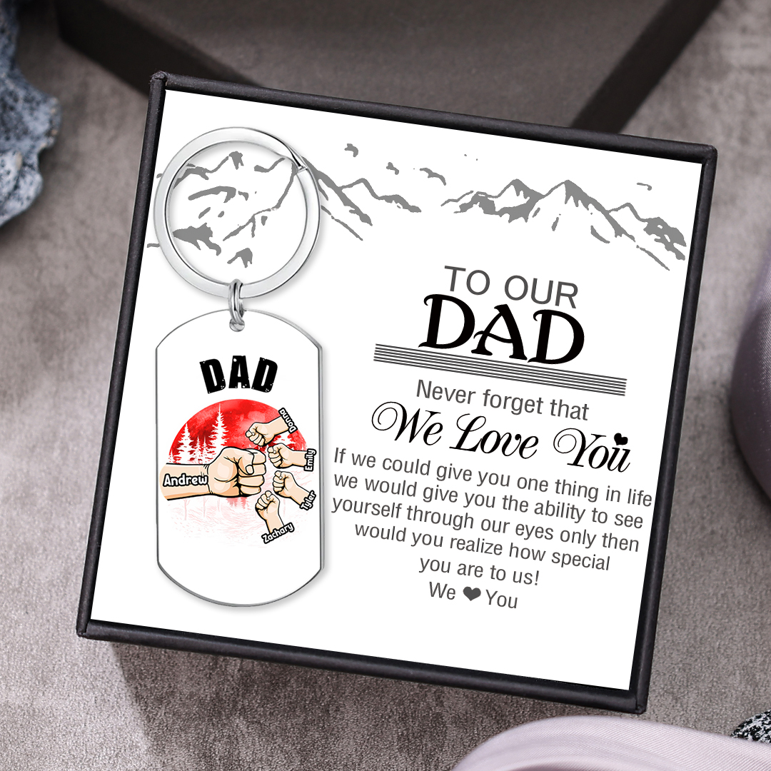 Custom 4 Names & 1 Text Keychain Personalized Fist Bump Keychain Father's Day Gifts for Dad