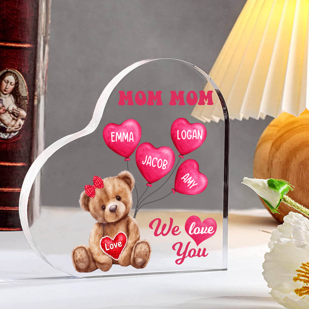 4 Names - Personalized Acrylic Heart Keepsake Custom Text Bear Balloon Family Ornament Gifts for Mother/Grandma