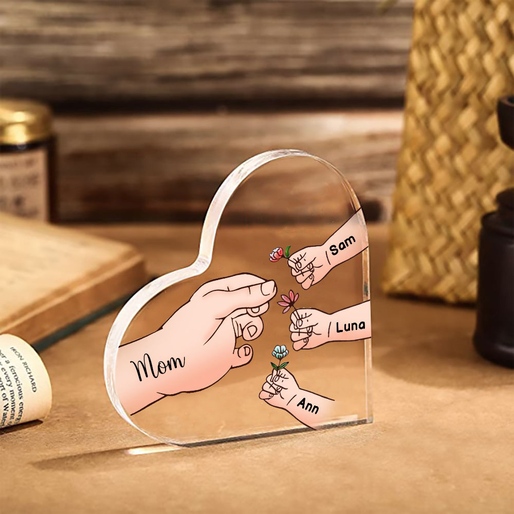 4 Names - Personalized Acrylic Heart Keepsake Handing Flowers to Mother Ornaments Gifts for Grandma/Mother