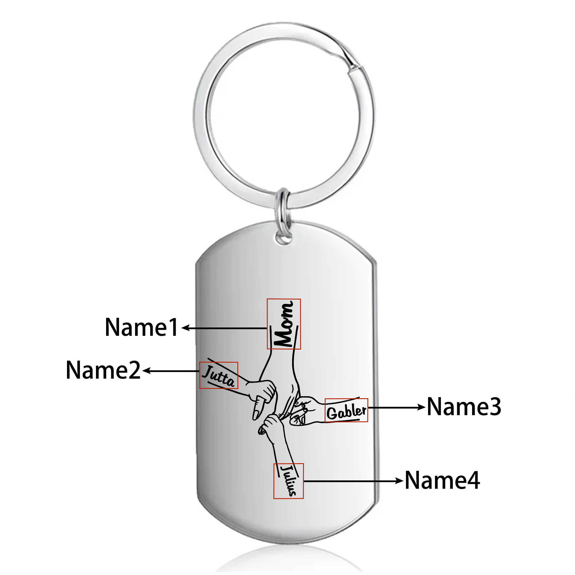 4 Names - Personalized Name Keychain Holding Hands Keychain Mother's Day Gifts For Grandma/Mother