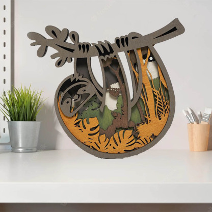 Sloth Totem Wooden Home Decoration 3D Carving Forest Animal Night Light