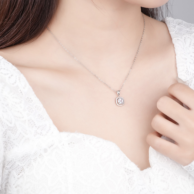Custom Birthstone Necklace Square Pendant S925 Sterling Silver Necklace Birthday Gifts For Women