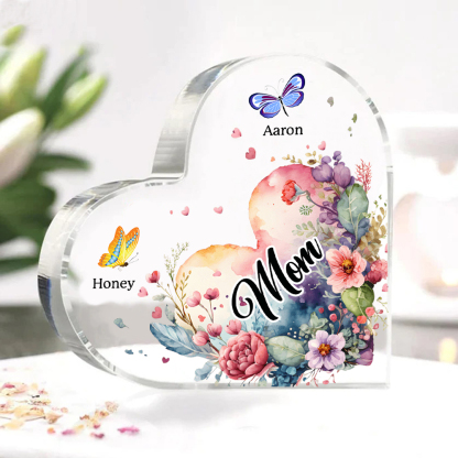 Personalized Acrylic Heart Keepsake Custom 3 Names Flowers Ornament Gifts for Mom/Grandma