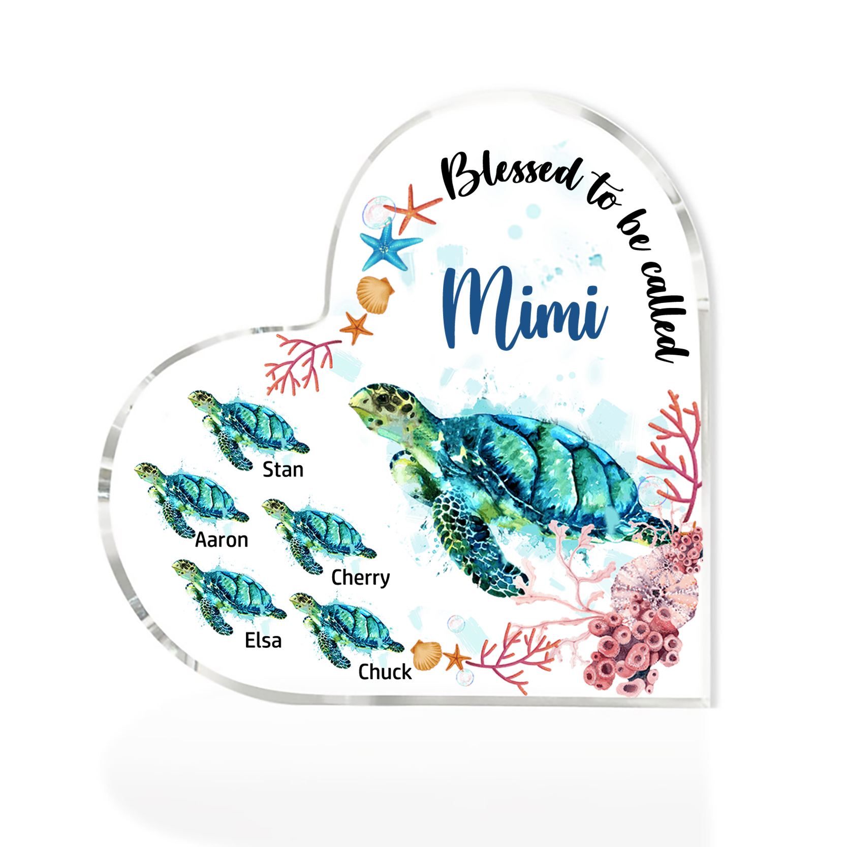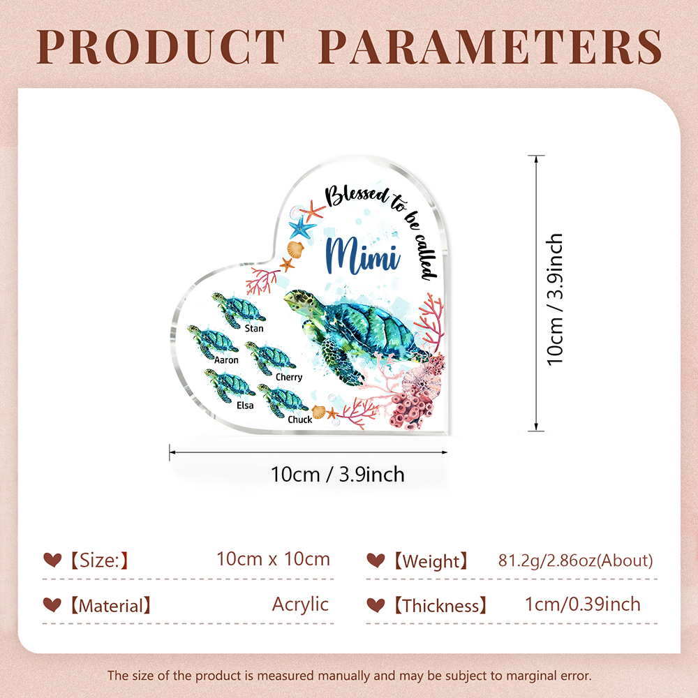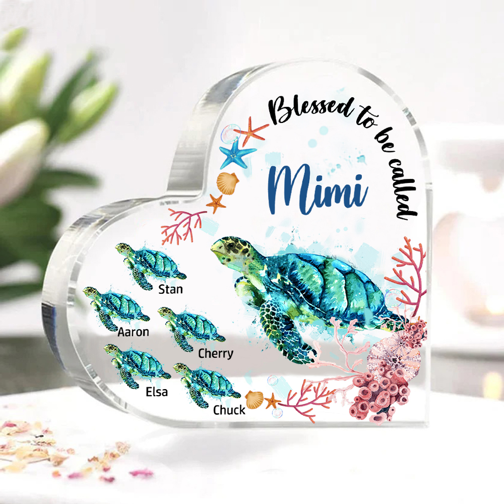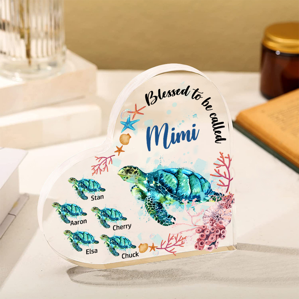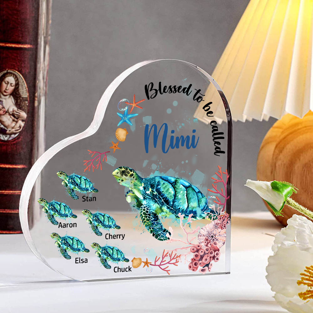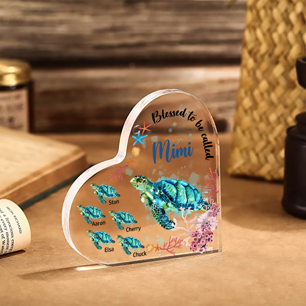 Personalized Acrylic Heart Keepsake Custom 6 Names Sea Turtles Ornament Gifts for Mom/Grandma