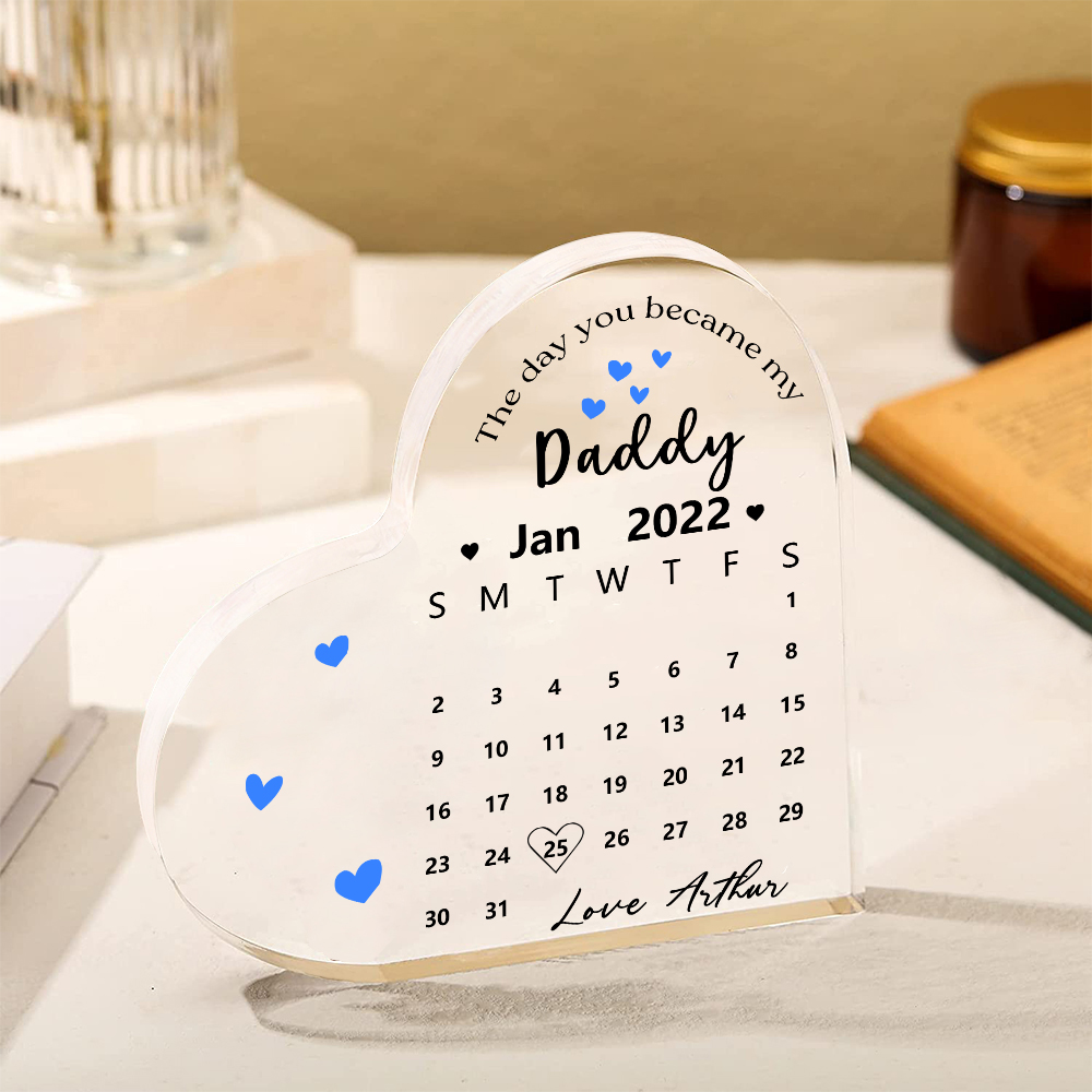 Personalized Acrylic Heart Keepsake Custom Date & Text Calendar Ornaments - The Day You Became My Daddy