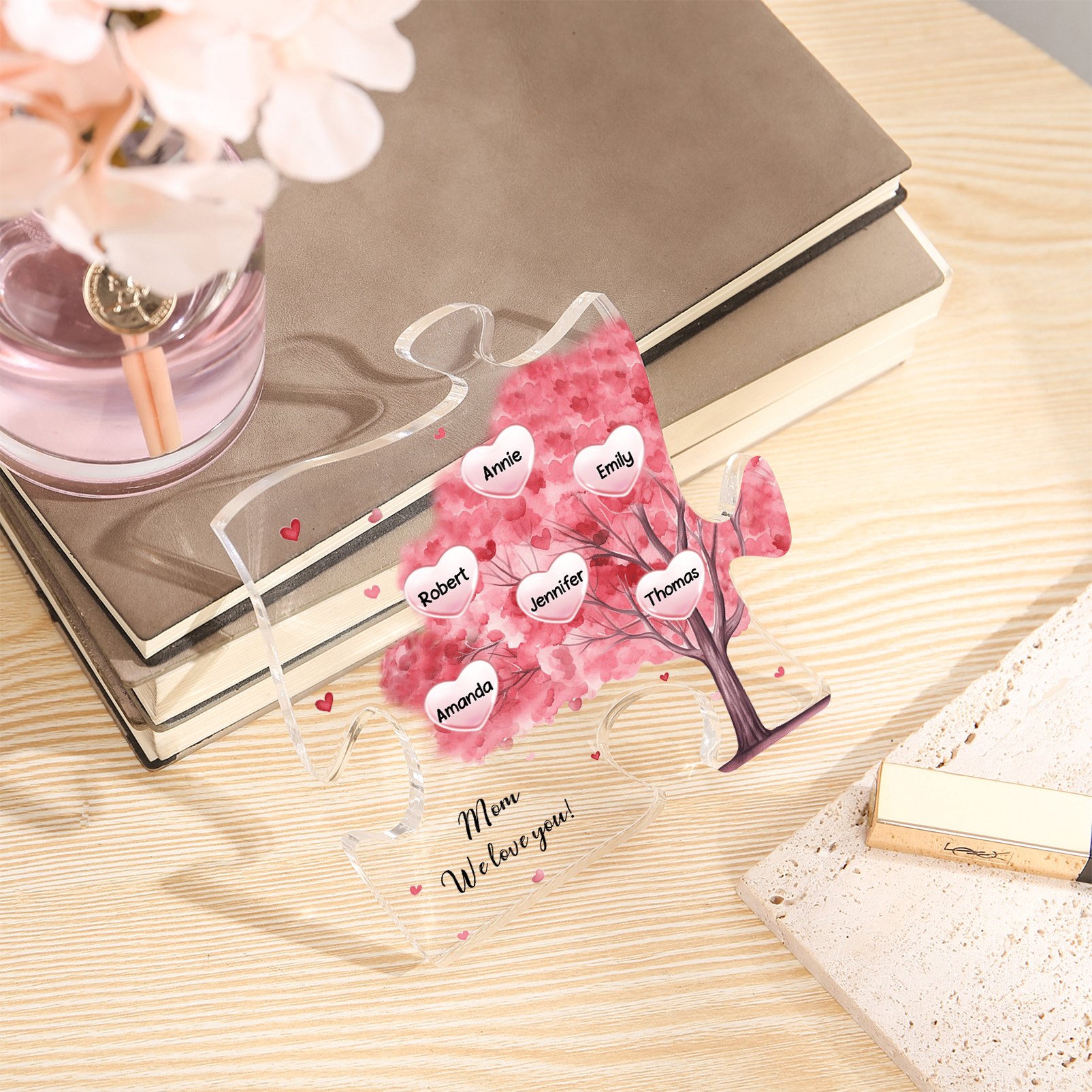 Personalized Acrylic Puzzle Plaque Custom 6 Names & 1 Text Pink Tree Family Ornament Gift for Mom/Grandma