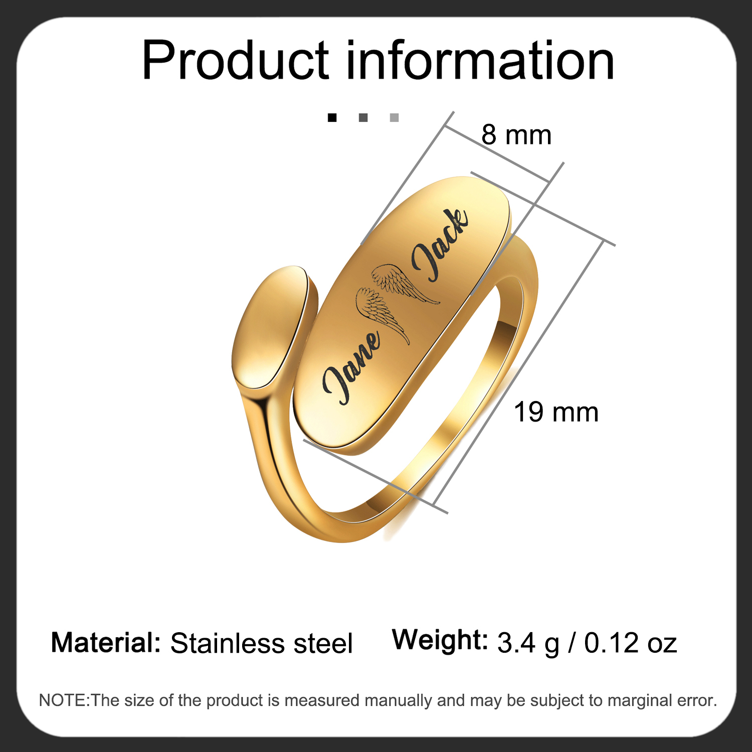 Personalized Angle Wings Ring Custom Name Ring for Her Him