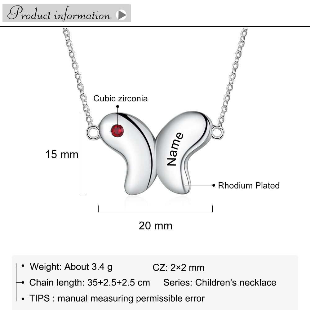 Personalized Butterfly Necklace Custom Birthstone Kid"s Necklace