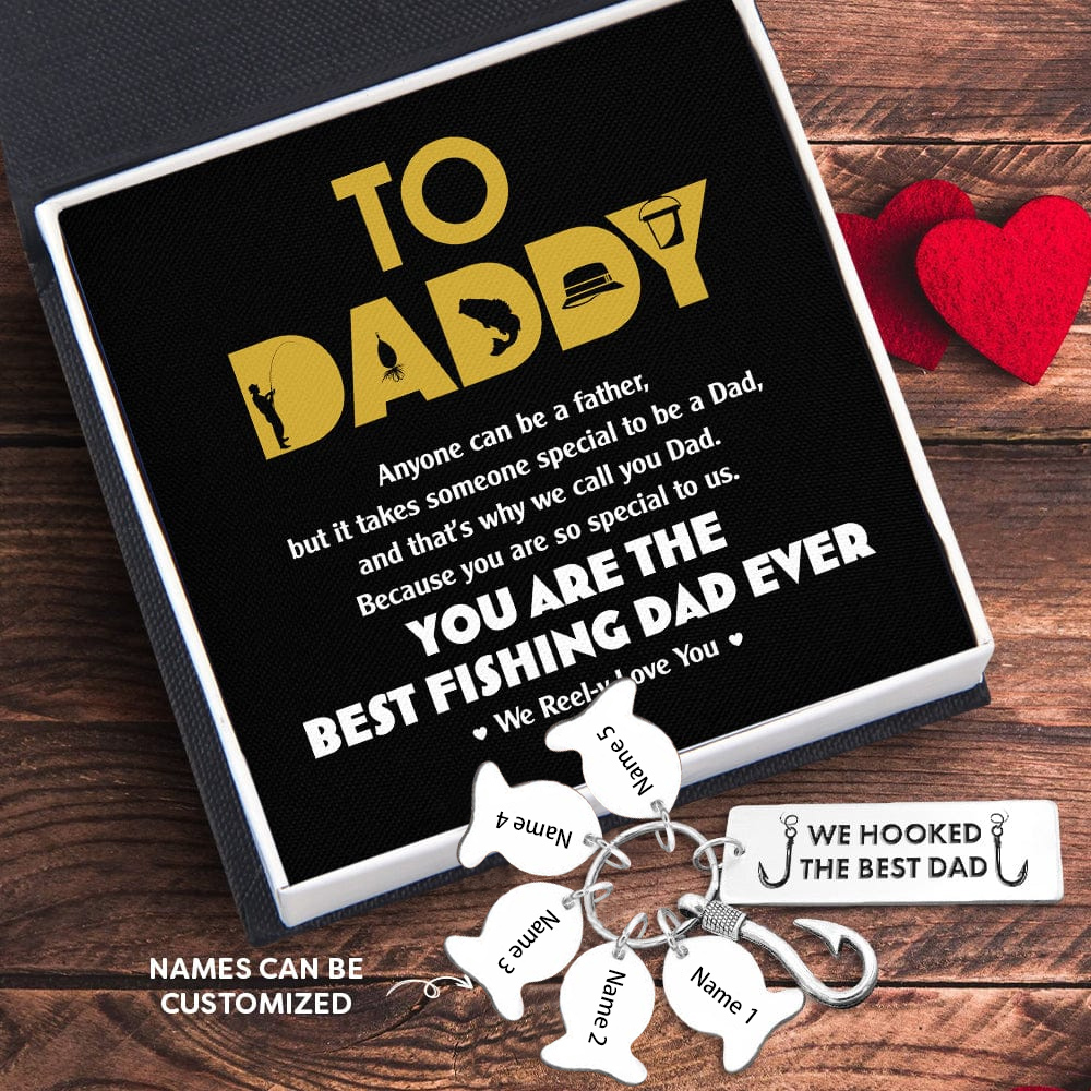Personalized Fishing Hook Keychain - To Daddy - WE HOOKED THE BEST DAD - Custom 5 Names For Father