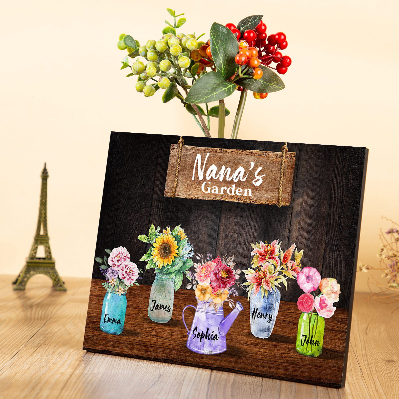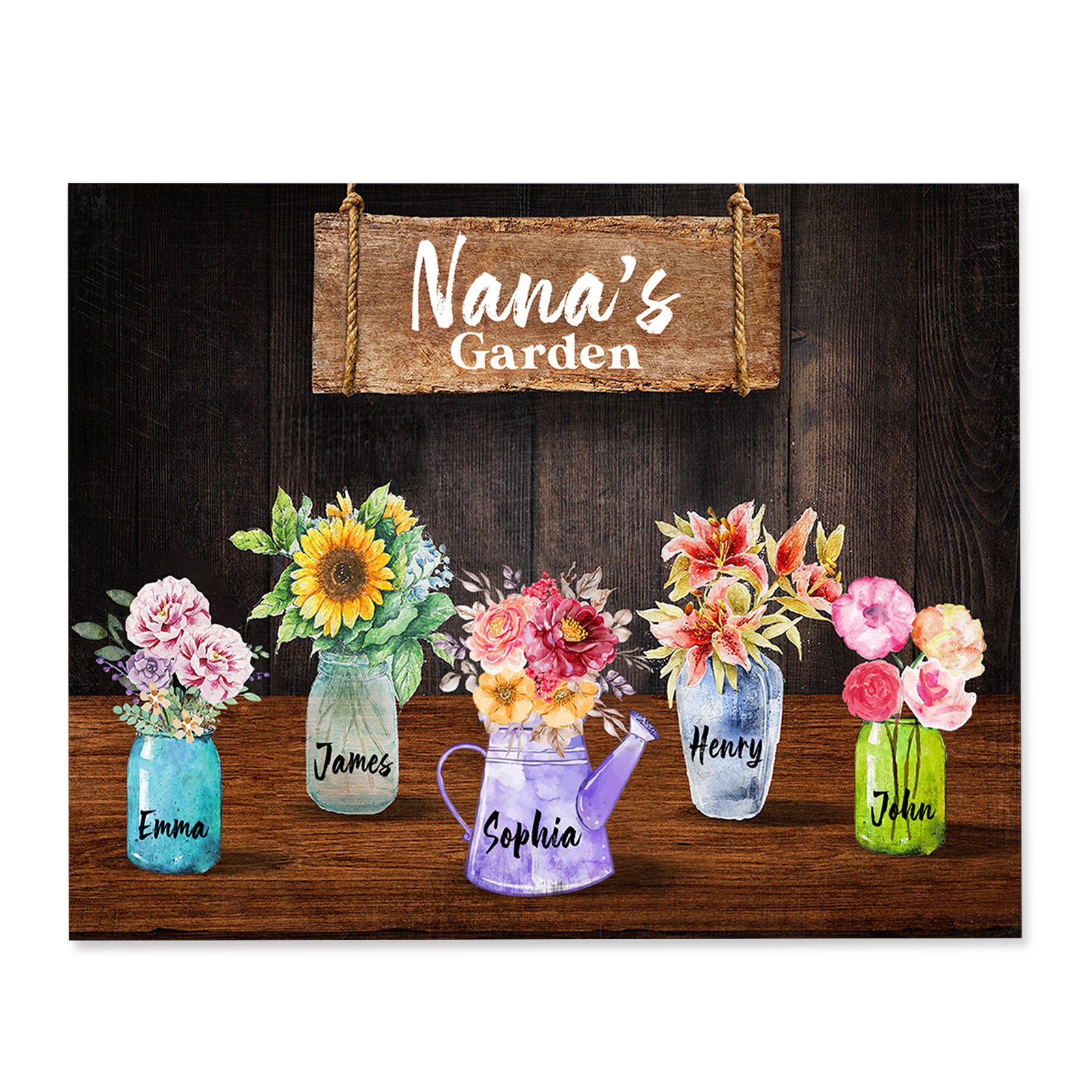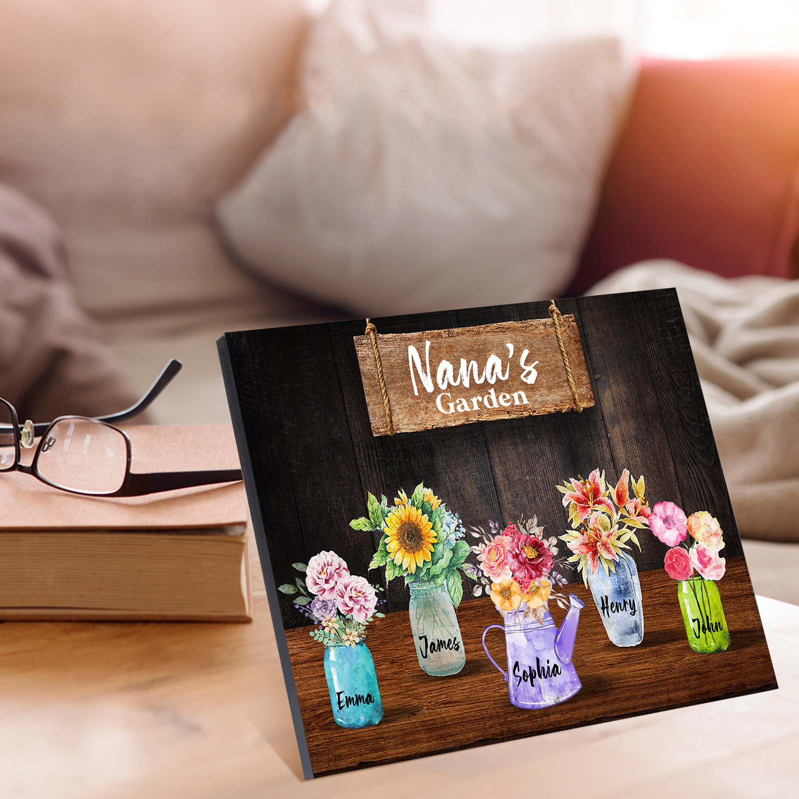 Personalized Flower Wall Art Frame Custom 5 Names Frame Nana's Garden Sign Wood Personalized Gift for Mom Nana Grandma