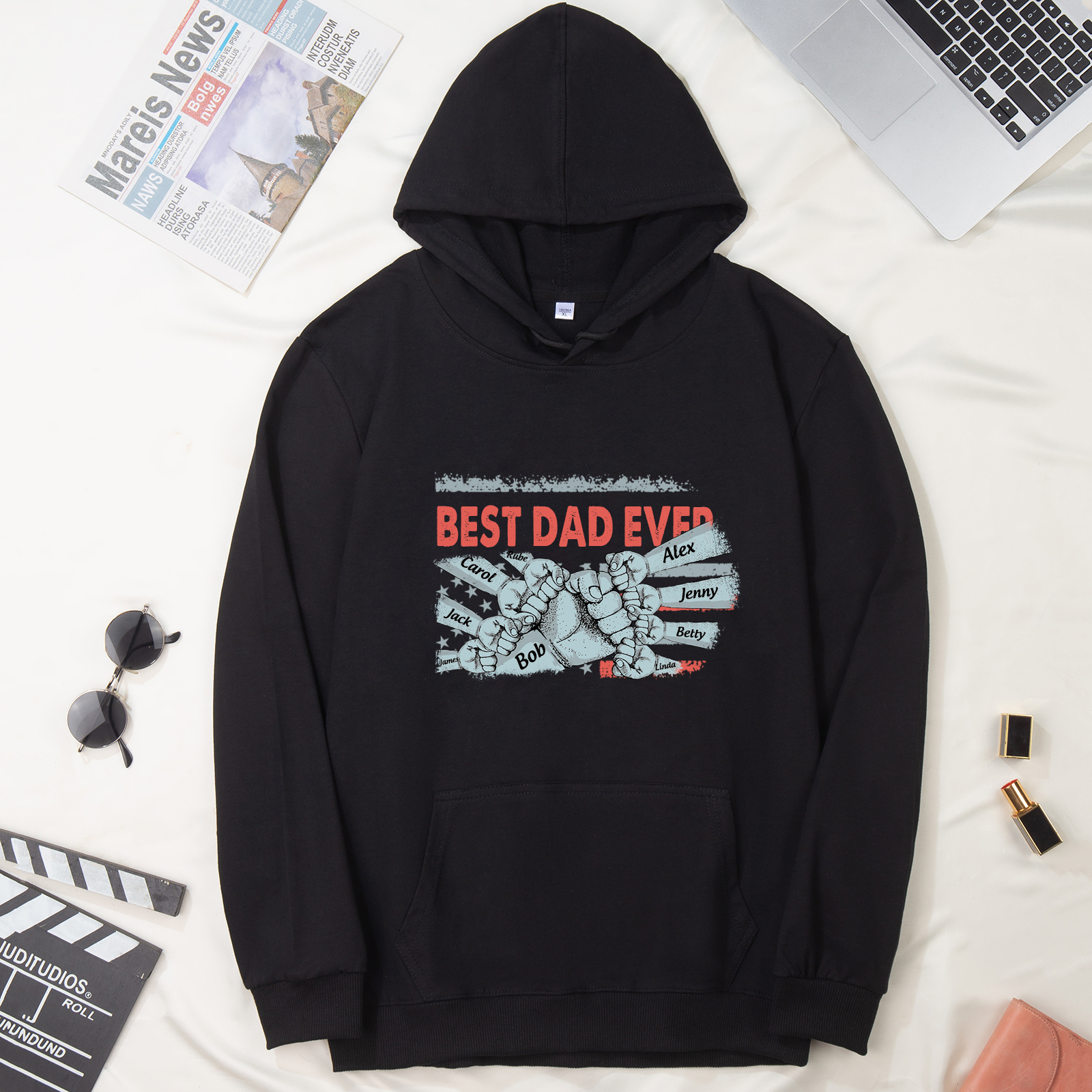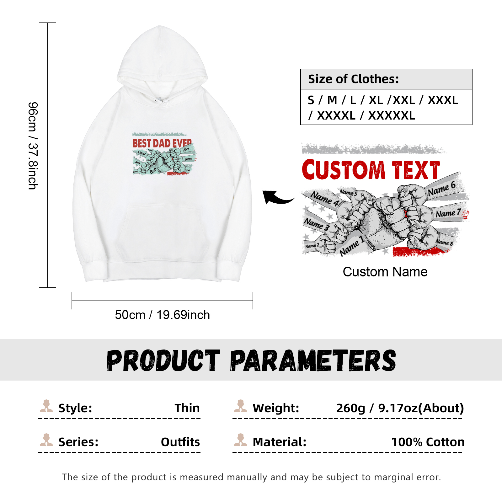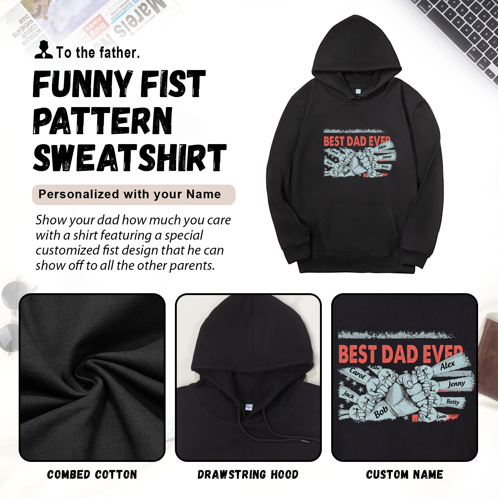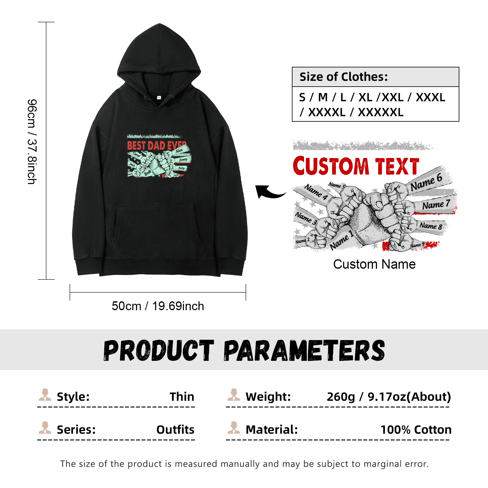 Personalized Hoodie Crewneck Sweatshirt Custom 9 Names Clothes Black White Hoodie Fist Signs Gift for Dad Grandpa