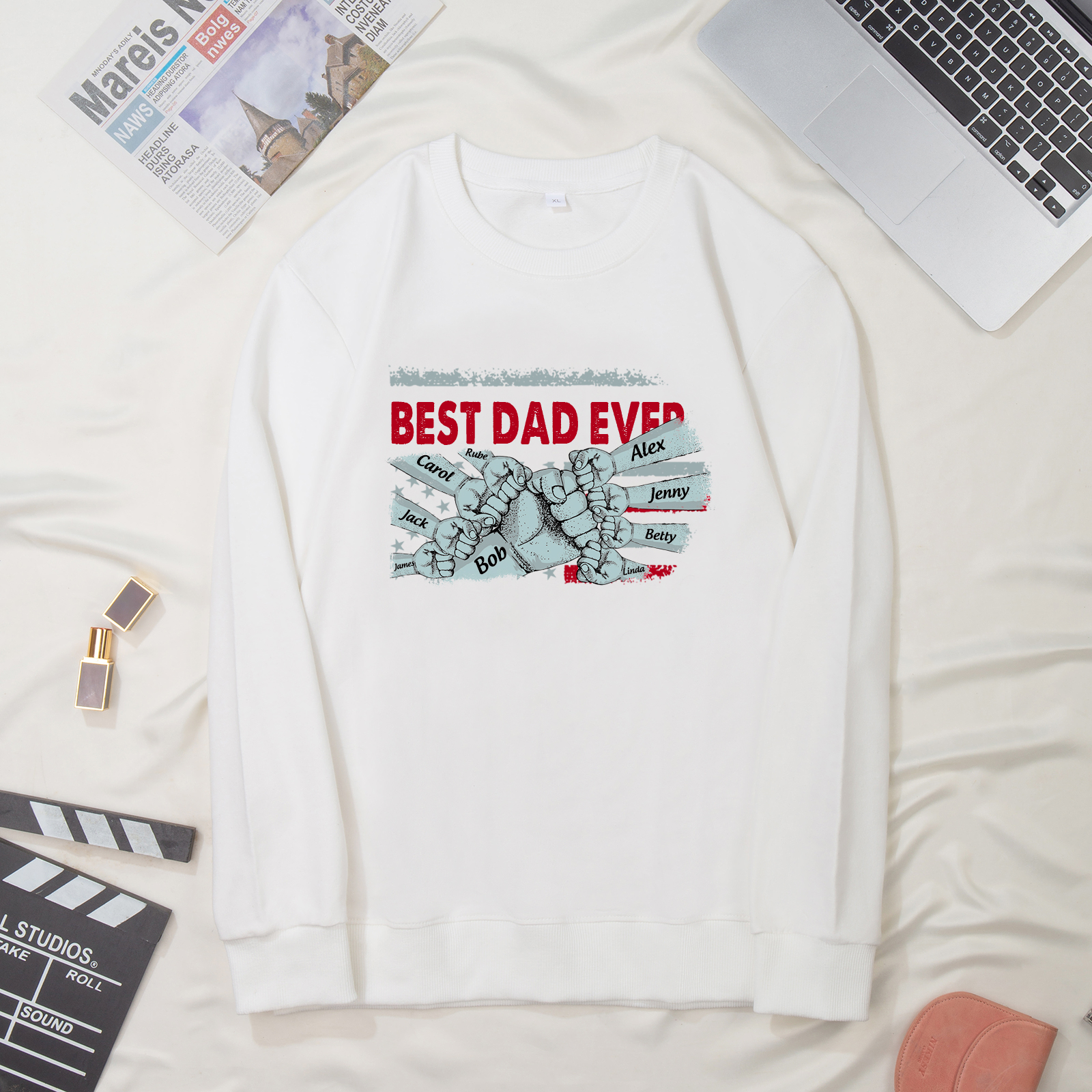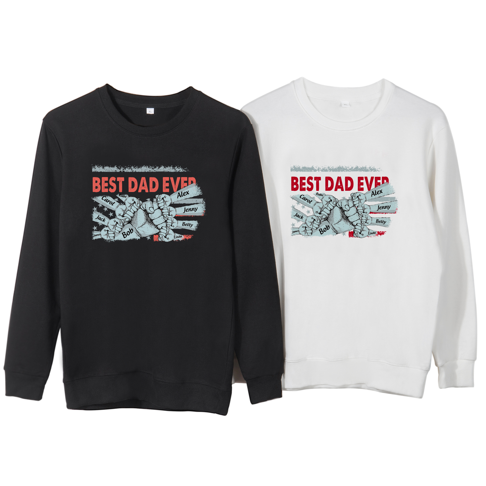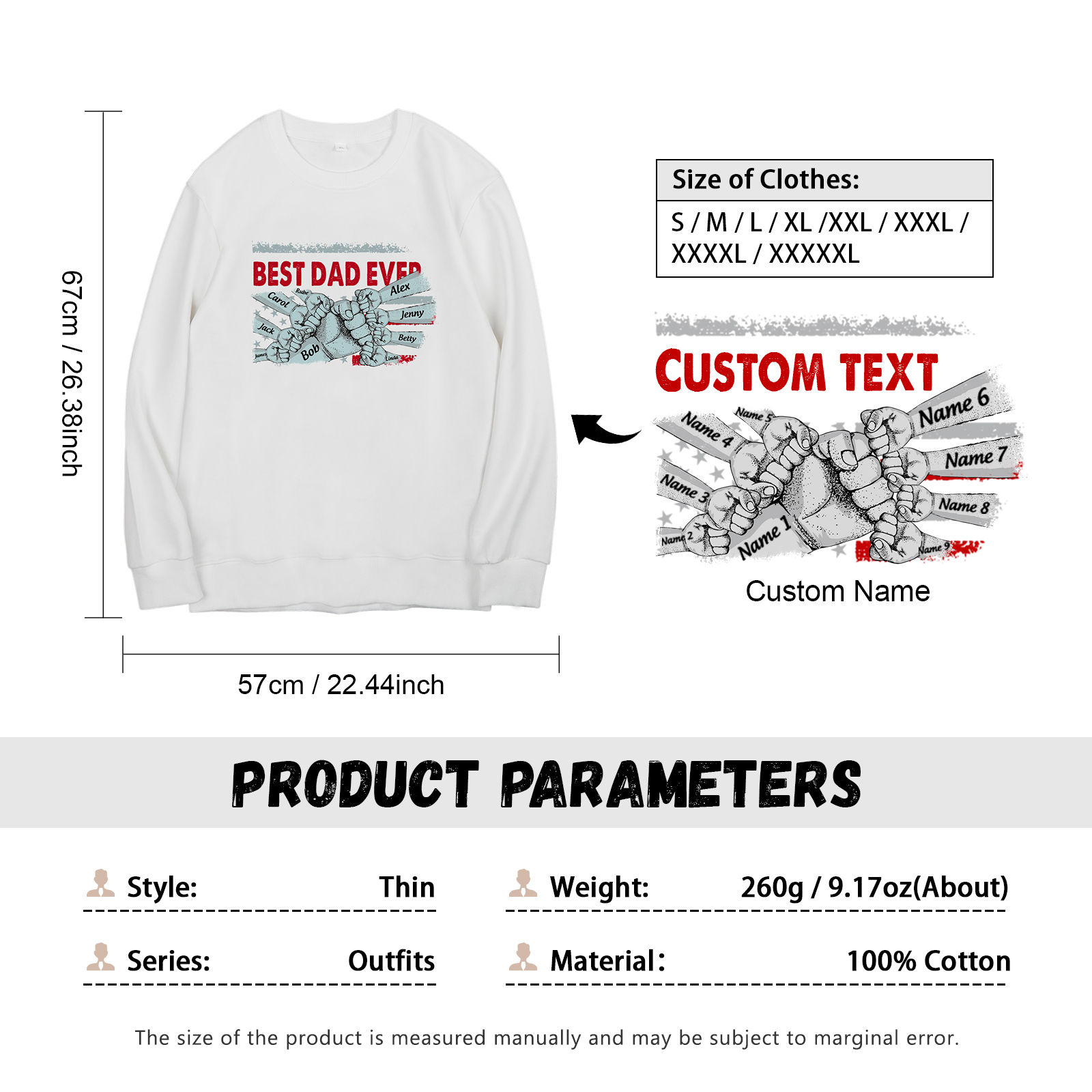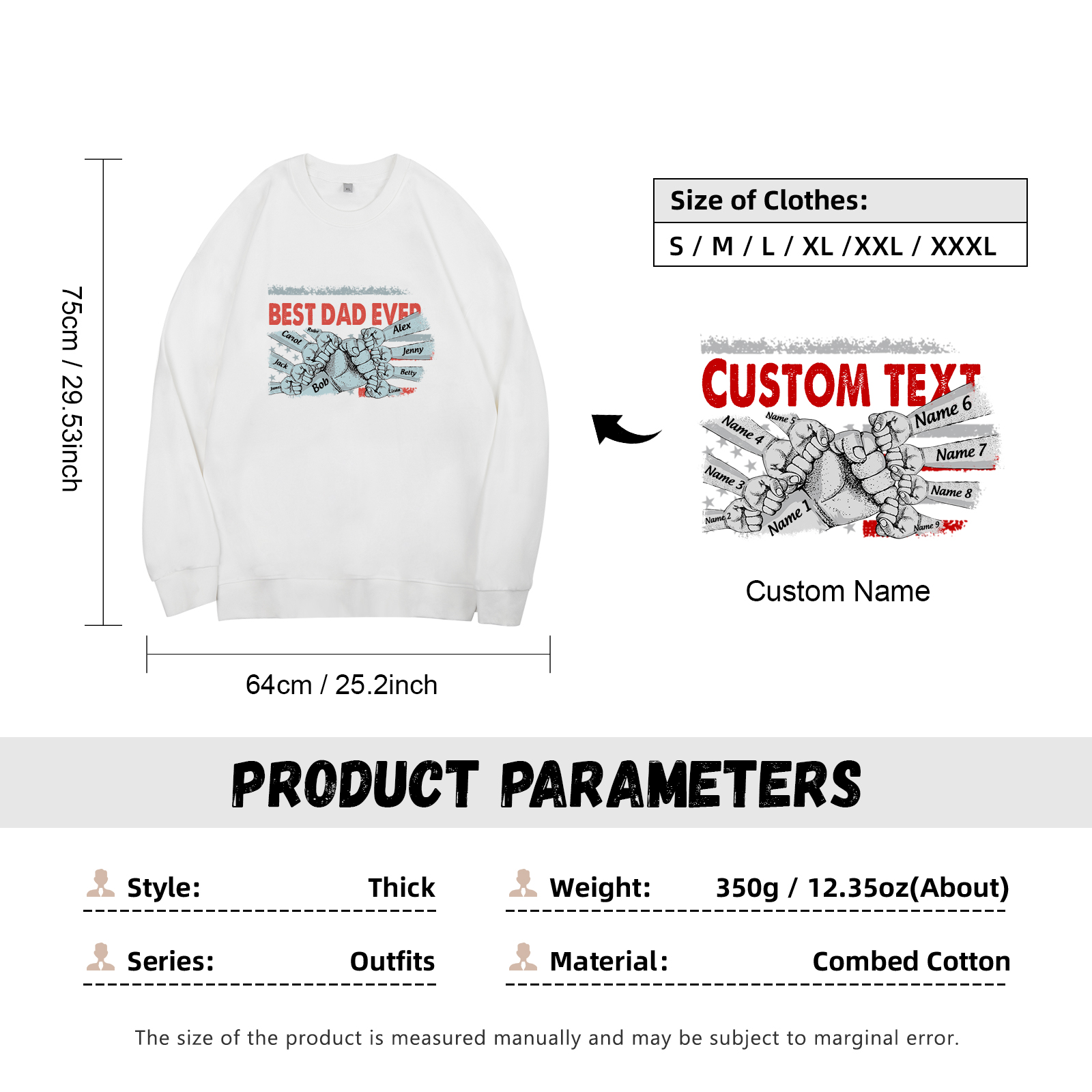 Personalized Hoodie Crewneck Sweatshirt Custom 9 Names Clothes Black White Hoodie Fist Signs Gift for Dad Grandpa