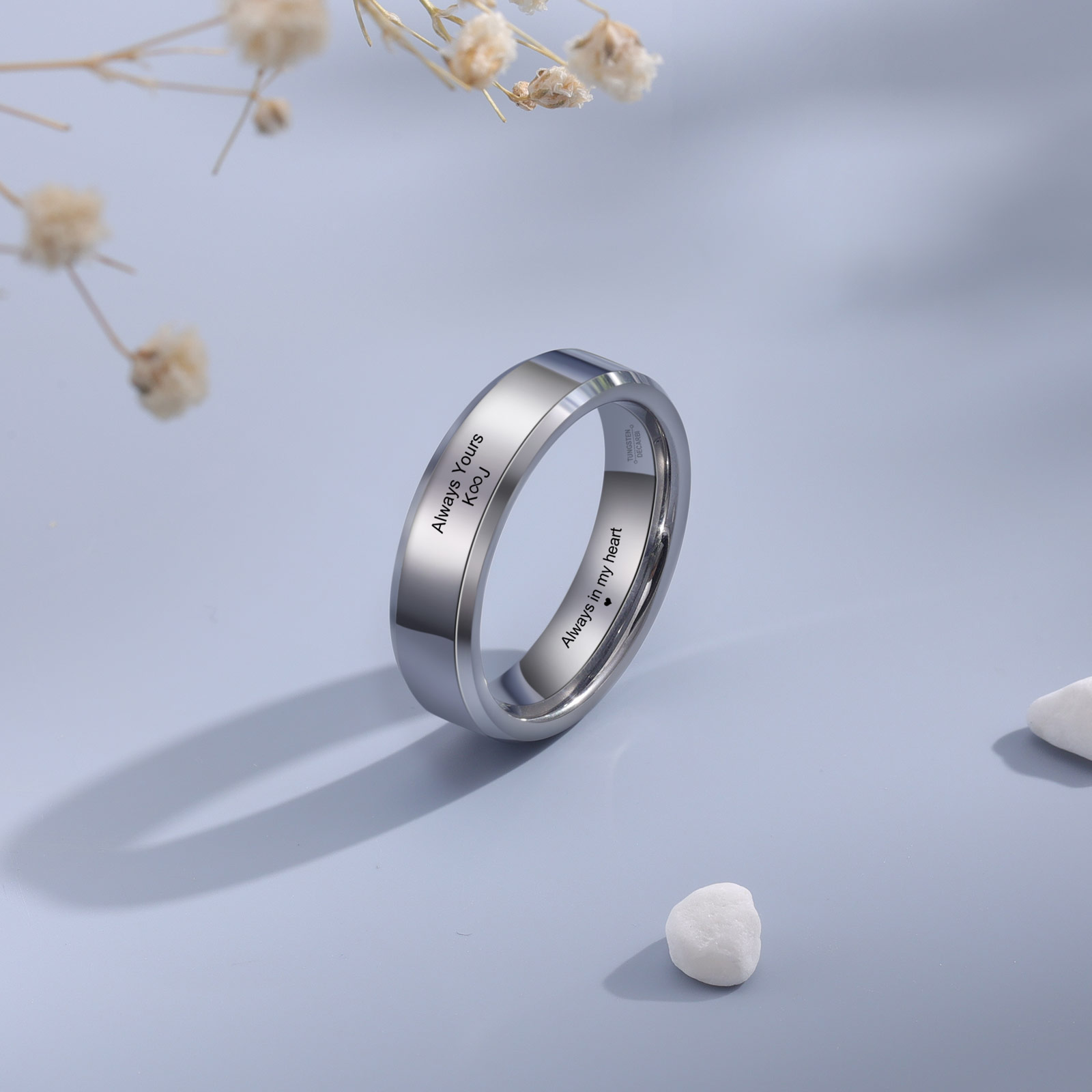 Personalized Mens Ring Engraved Names Tungsten Steel Ring for Him