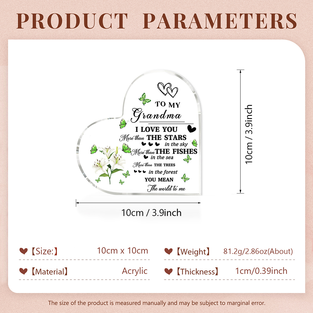 🌸 Based on a heart-shaped design, this plaque is a special gift for your Grandma, conveying your gratitude and affection, and becoming a cherished treasure for her to hold onto beautiful memories.