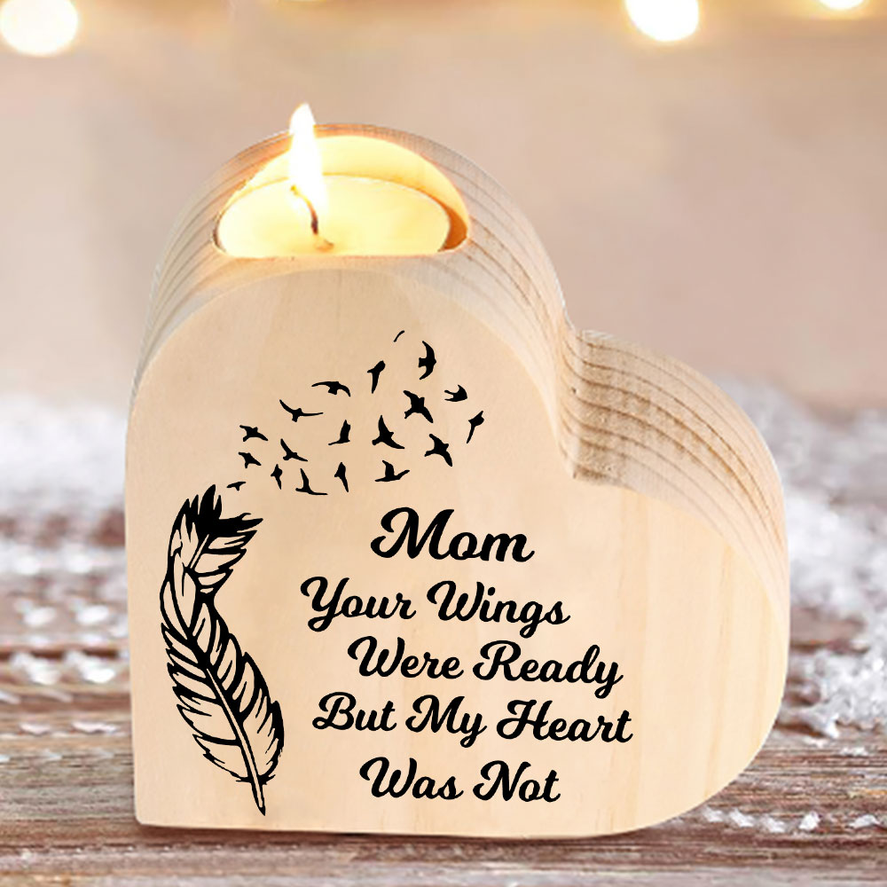 To My Mom Wooden Heart Candle Holder Memorial Candlesticks "Your Wings Were Ready"