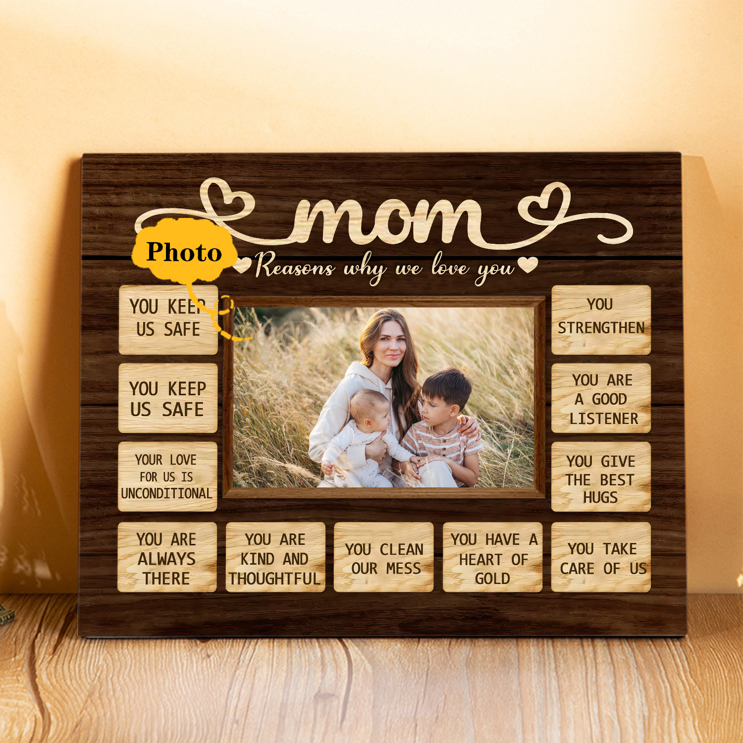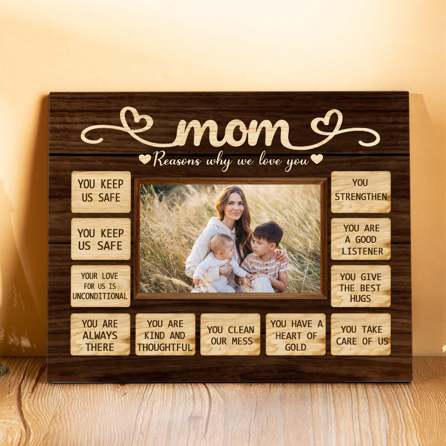 Give her a timeless surprise that will brighten her room or living space. Gather your most beautiful memories in a wooden frame and gift a personalized photo keepsake that will speak straight to her heart.