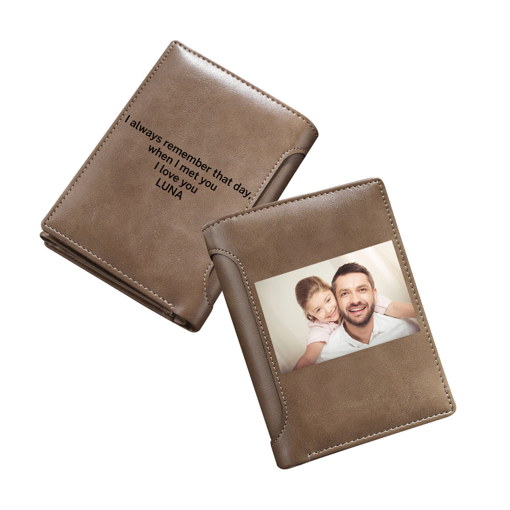 Personalized Monogram Wallet Custom Photo & Name & Letter Men's Leather Wallet Father's Day Gift for Him