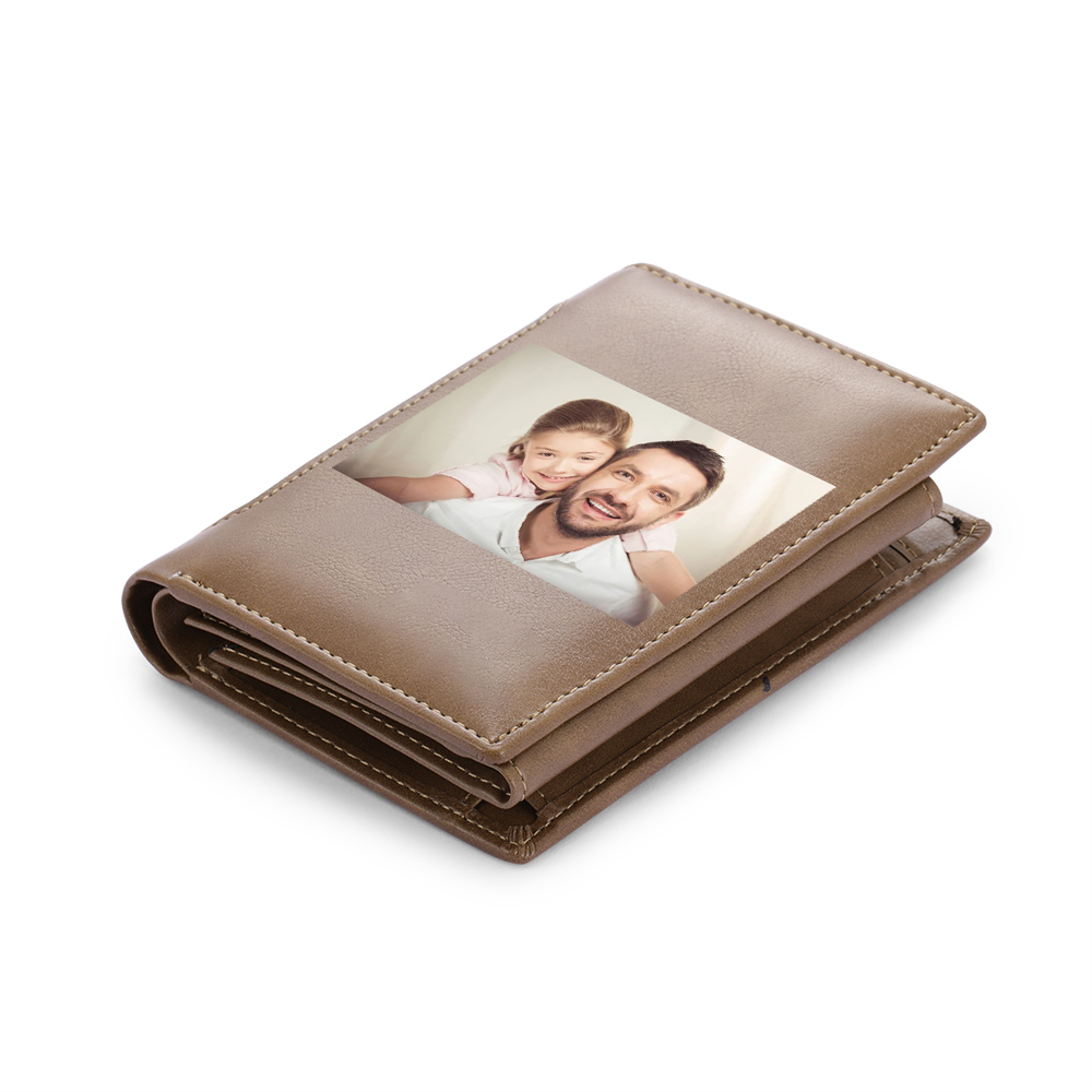 Personalized Men's Leather Wallet Custom 1 Photo Folding Wallet Gift for Him
