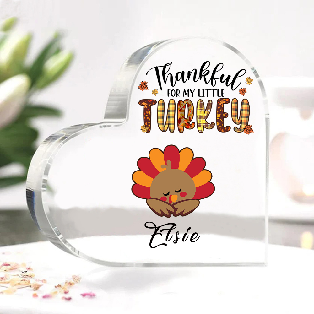 1 Name - Thanksgiving Acrylic Heart Keepsake Customized Name Ornament "Thankful For My Little Turkey" Gift for Family