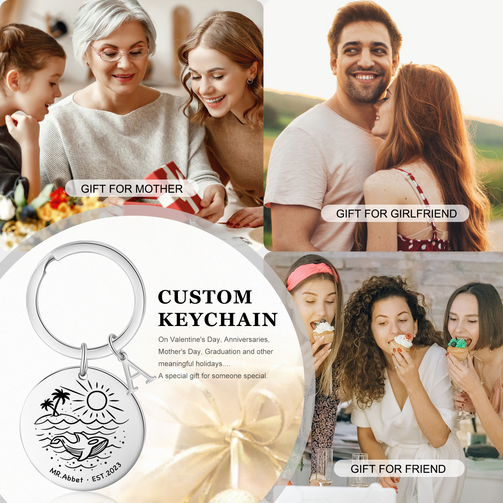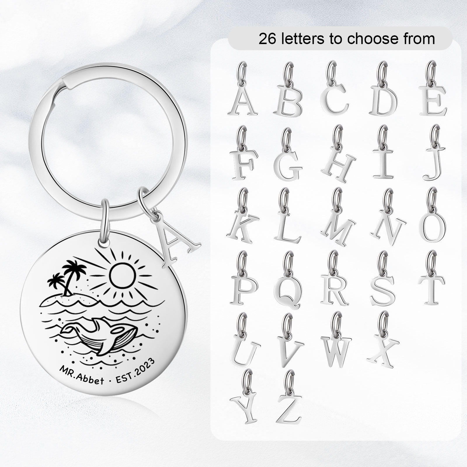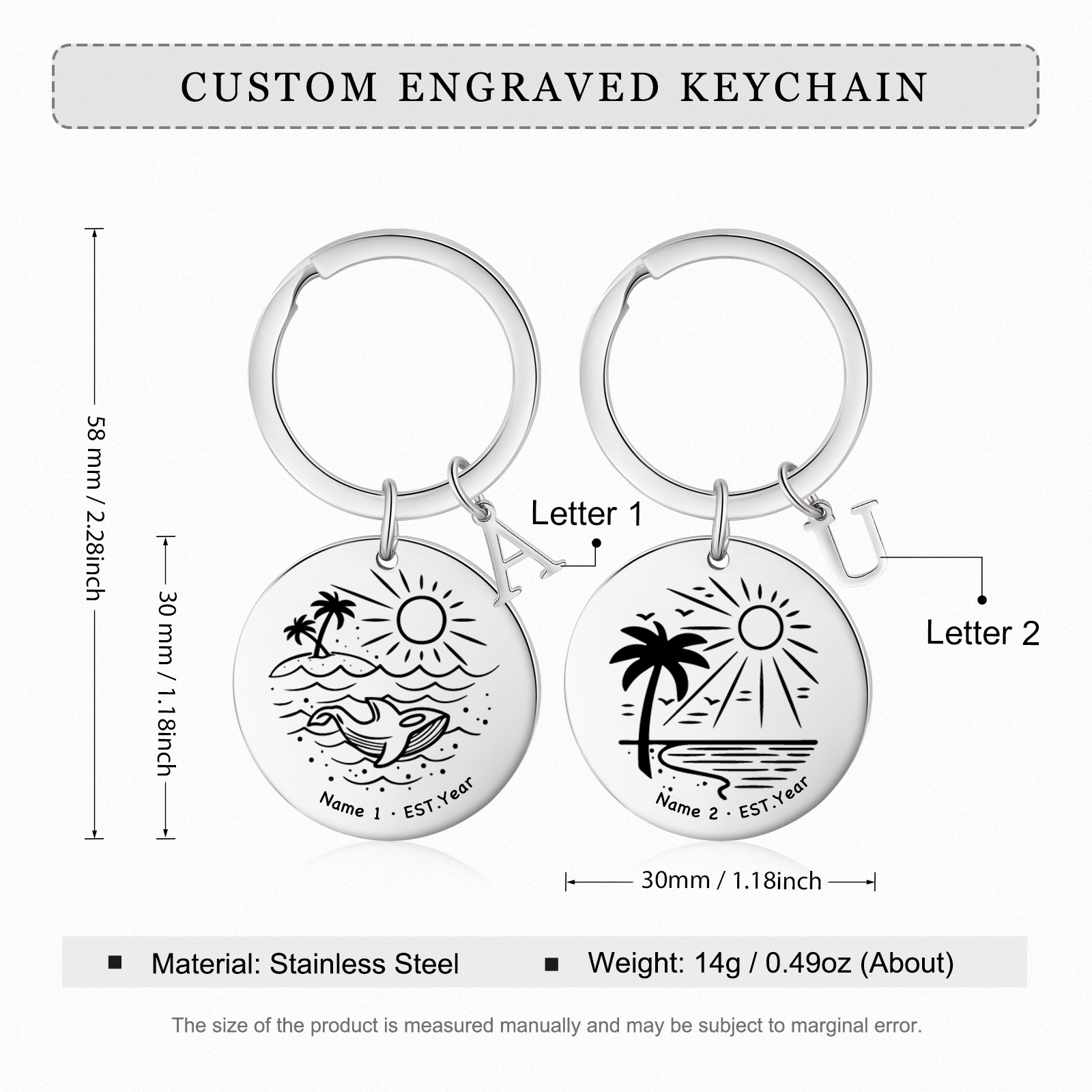 2 PCS Couple Keychains Custom 2 Letters & 2 Names & Year Keyring Valentine's Day Matching Couple Gift for Him/Her