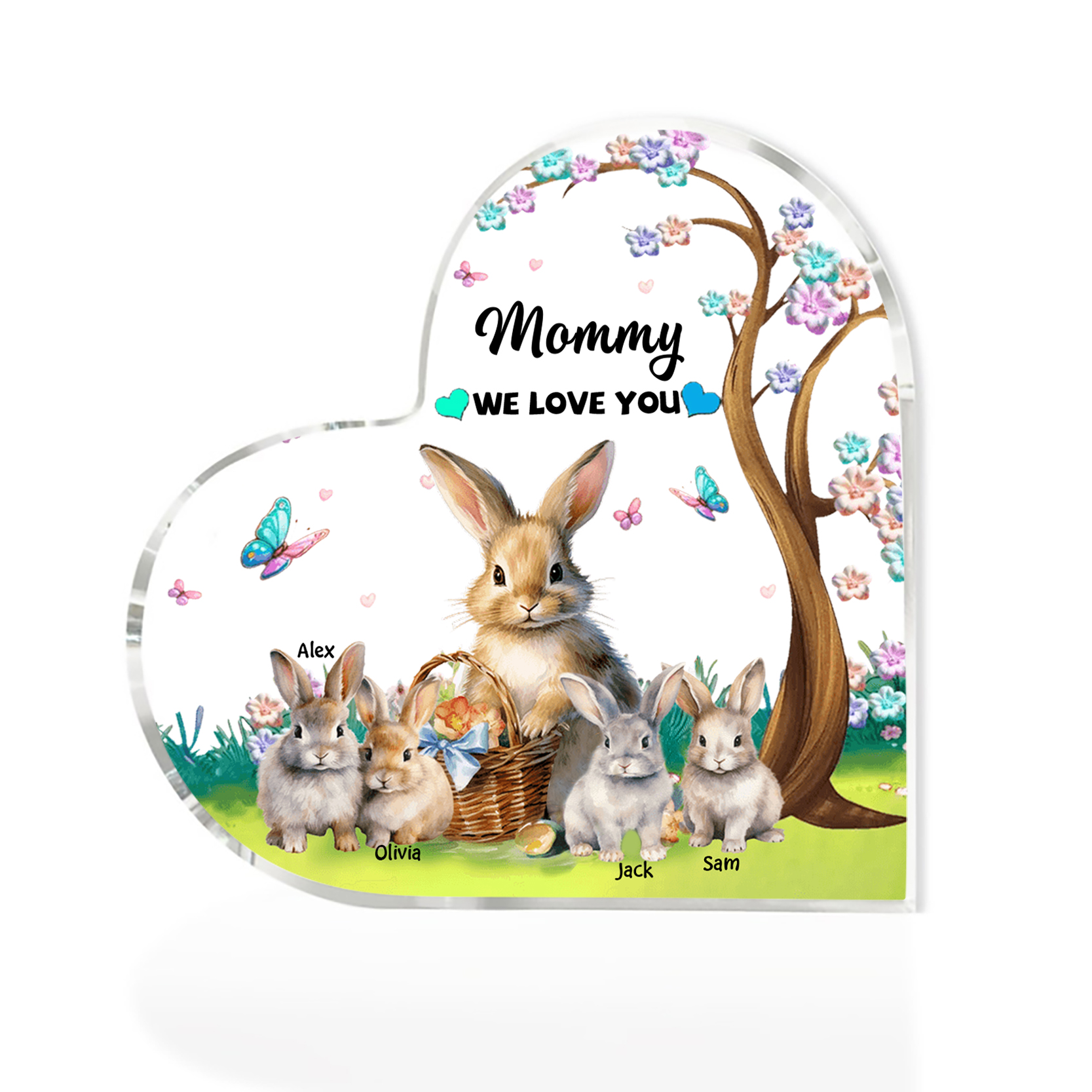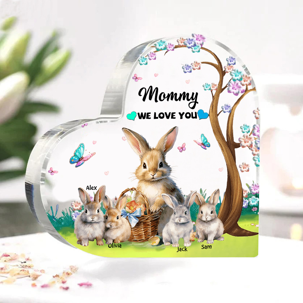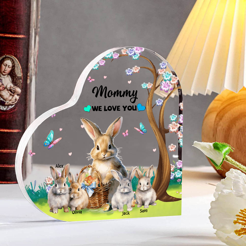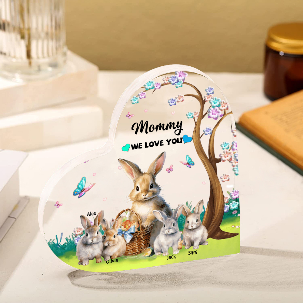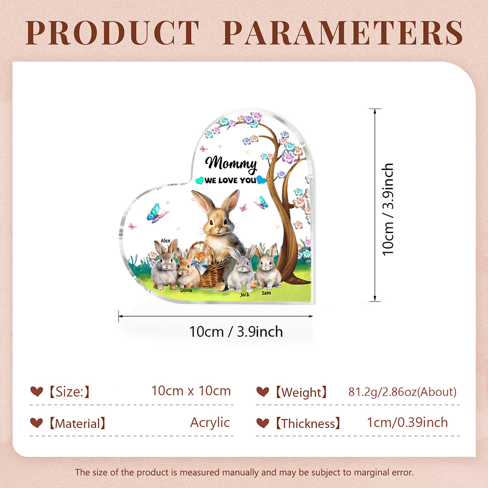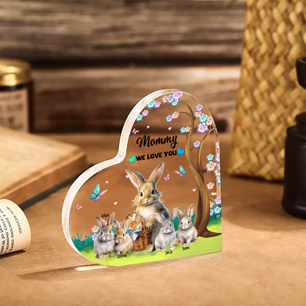 4 Names - Personalized Acrylic Heart Keepsake Custom Text Bunny Family Ornament Gifts for Mother/Grandma