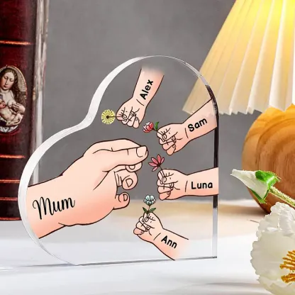 5 Names - Personalized Acrylic Heart Keepsake Handing Flowers to Mother Ornaments Gifts for Grandma/Mother