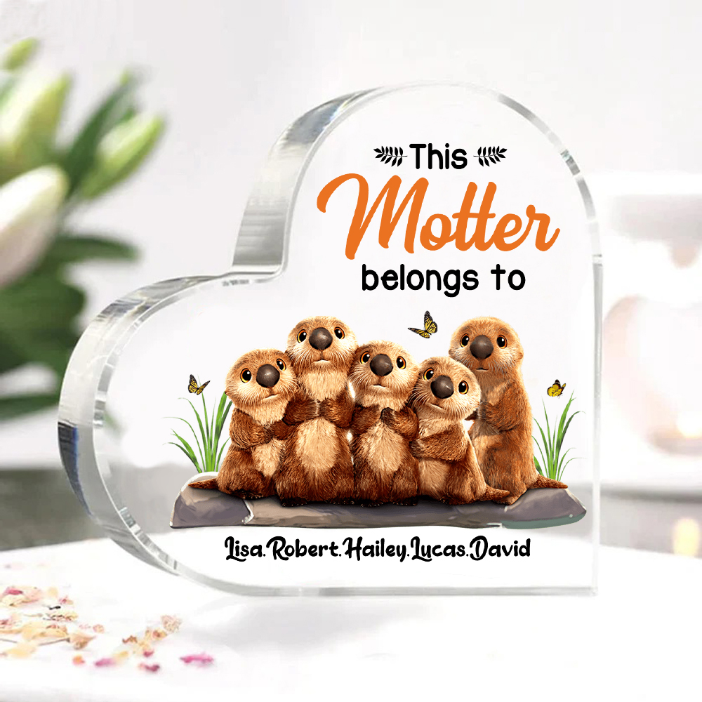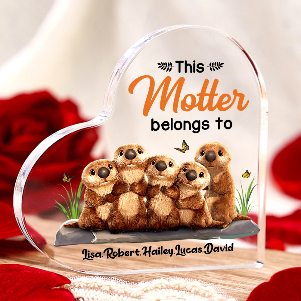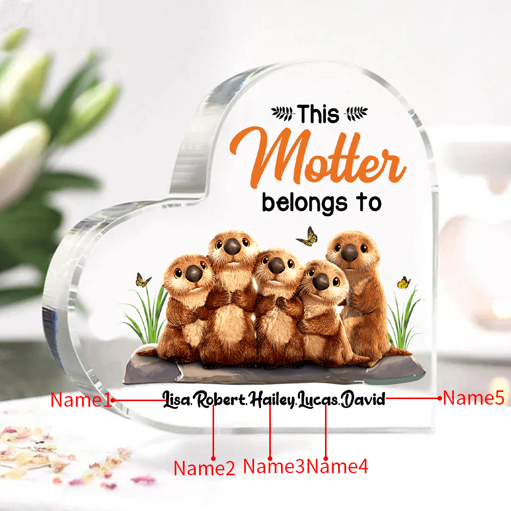 5 Names - Personalized Mom Acrylic Heart Keepsake Otters Family "This Motter Belongs To" Ornaments Gifts for Mother