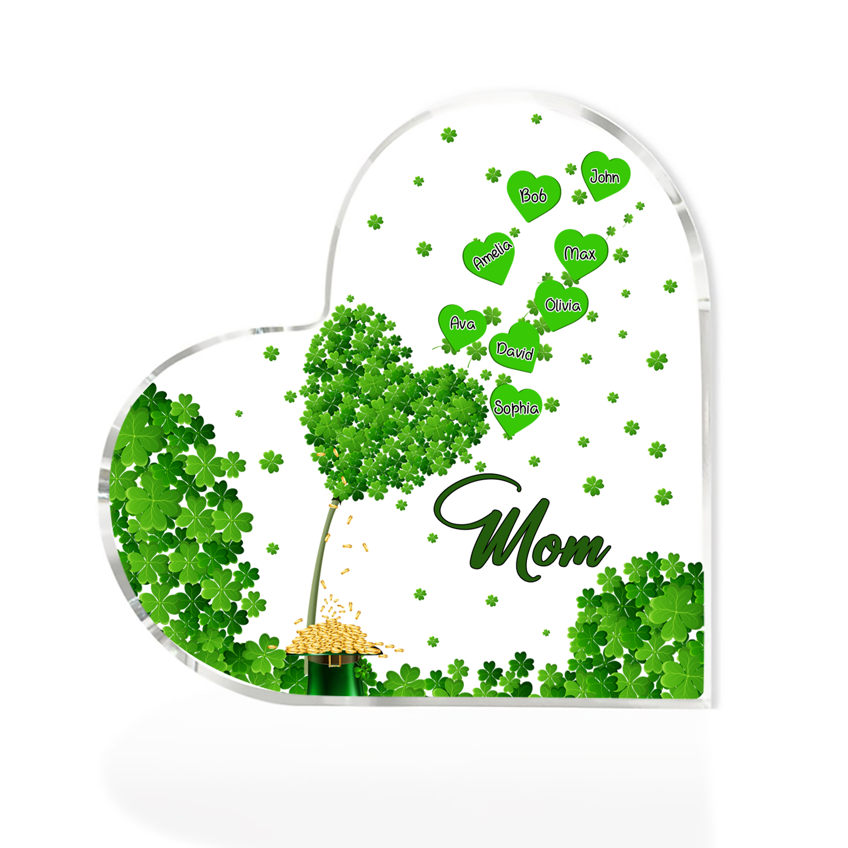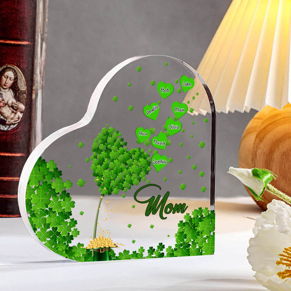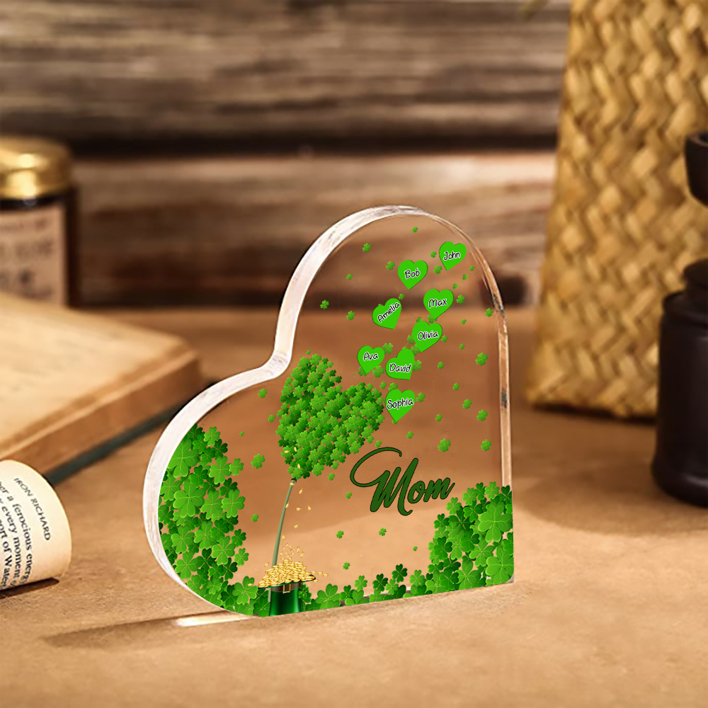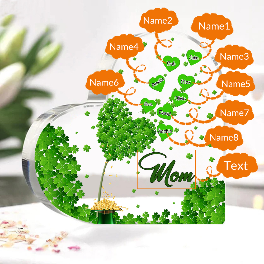 8 Names - Personalized Acrylic Heart Keepsake Custom Text Four-Leaf Clover Ornament Gift for Mother/Grandma