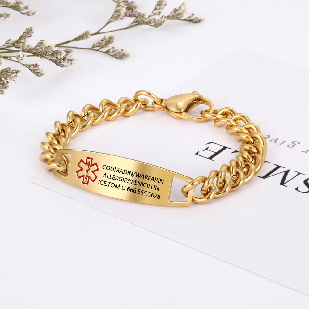 Engraving Medical Alert Bracelet Women Men Stainless Steel Chain Bracelet Waterproof Personalized Emergency ID Bracelet