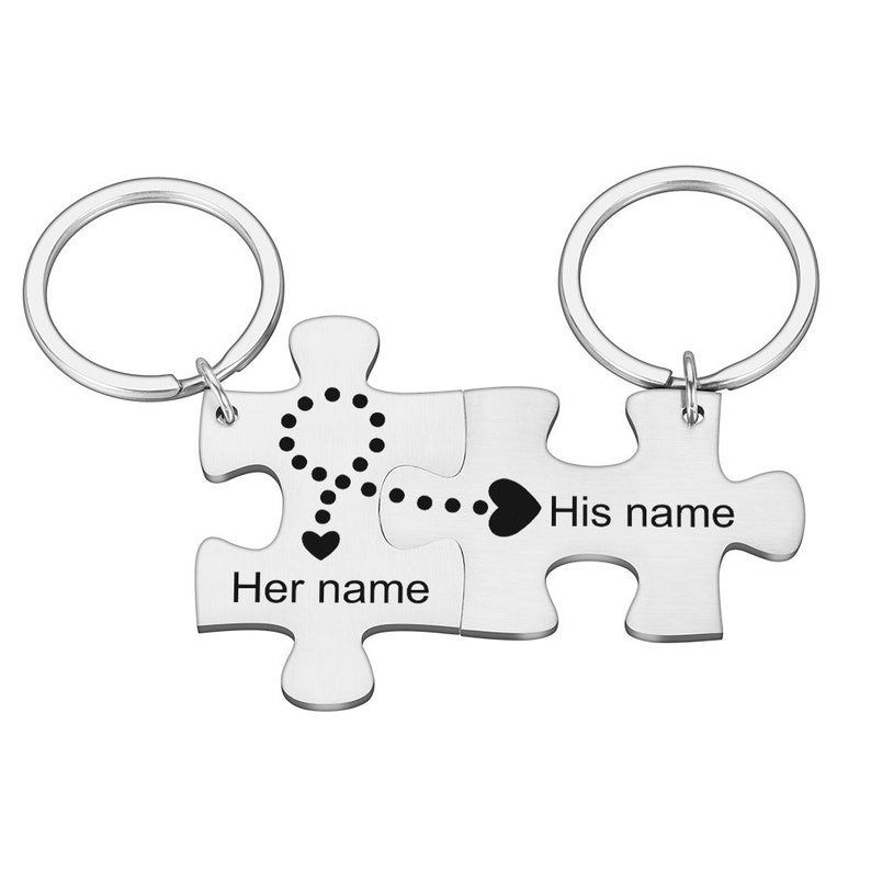 This Couple Puzzle Keychain Set engraved with your message is a gift idea for your loved one. It conveys the love of the heart to each other. One piece is not complete without the other!