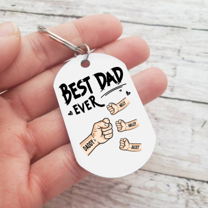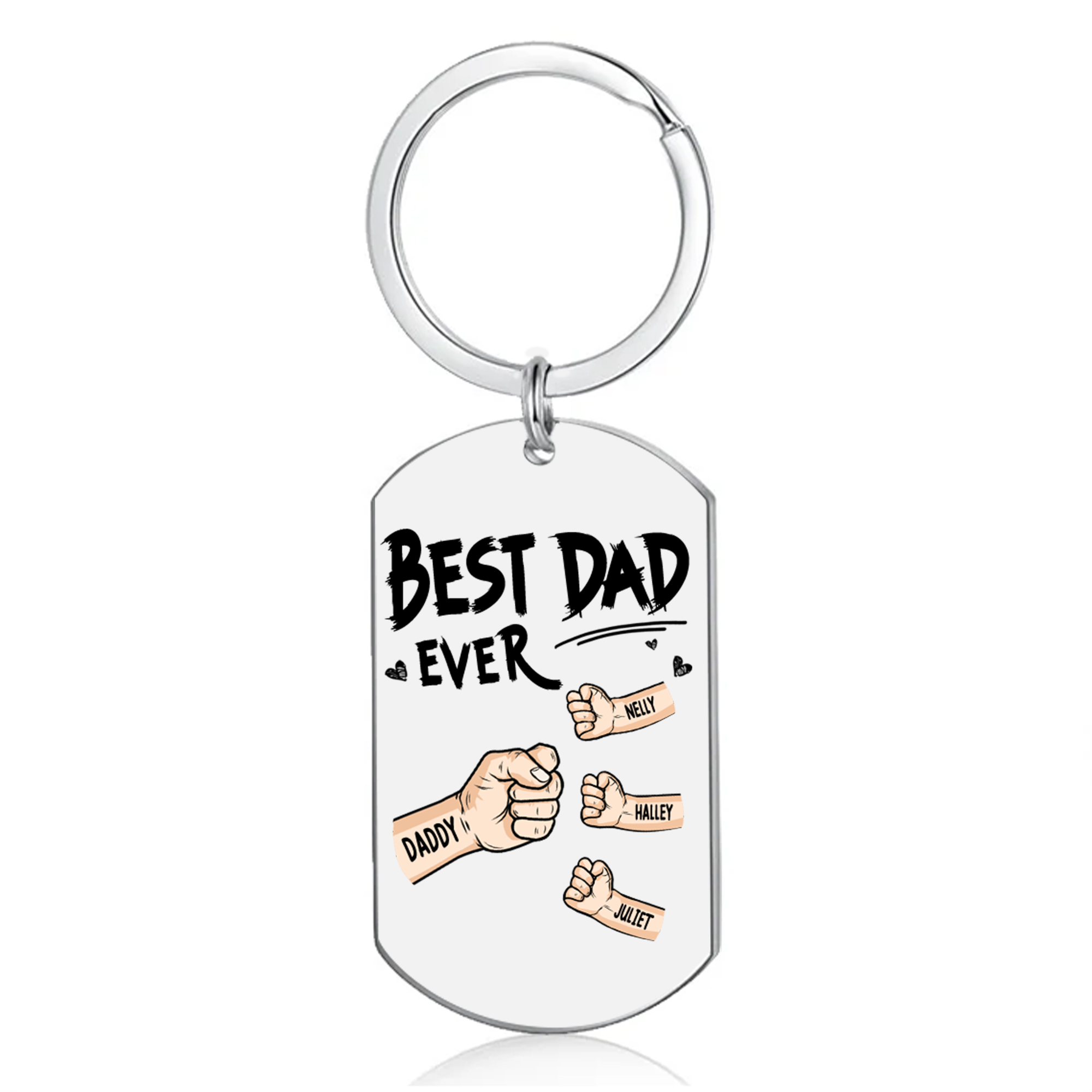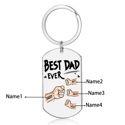 Personalized 4 Names Keychain Custom Fist Bump Keychain Father's Day Gift - Best Dad Ever