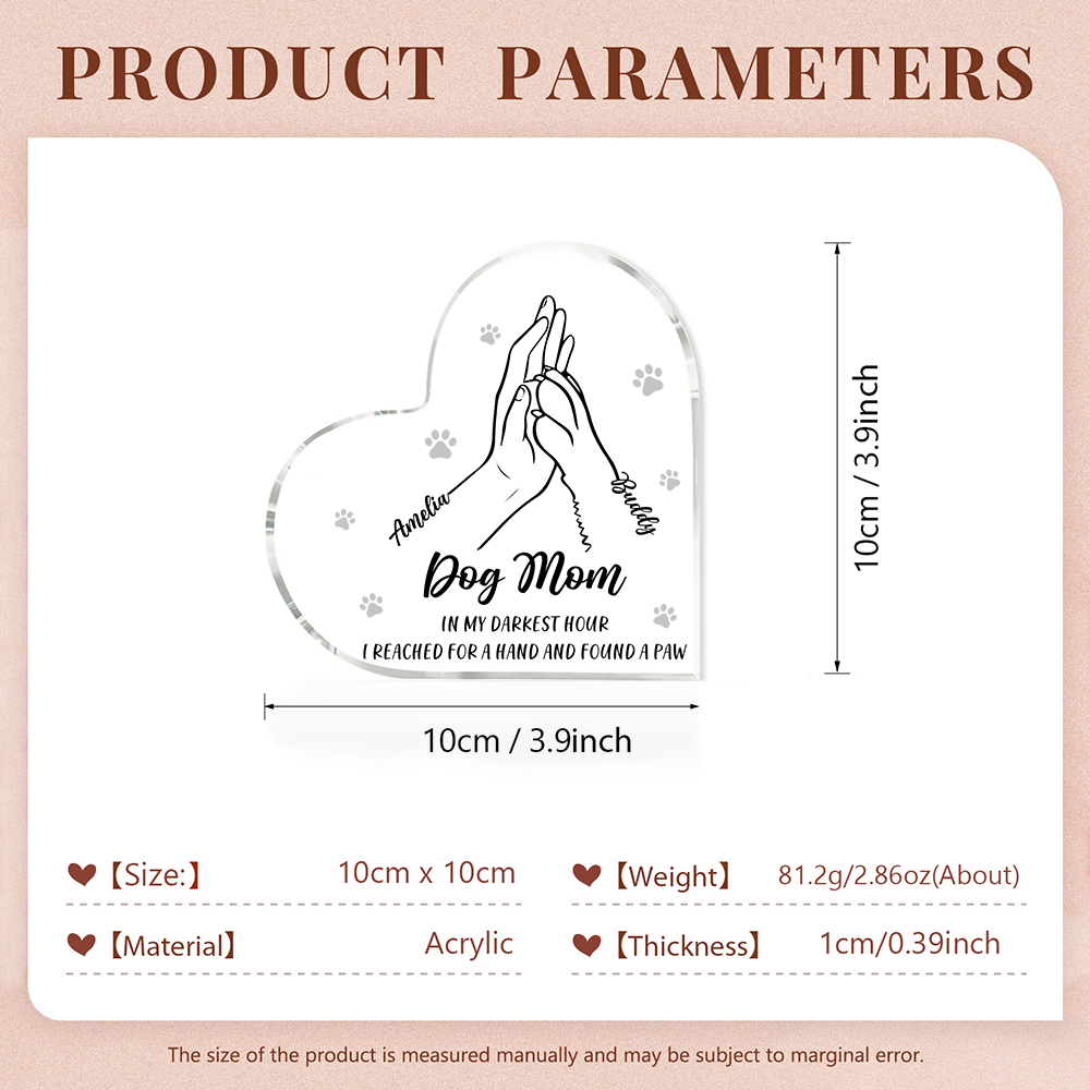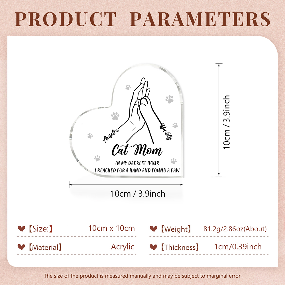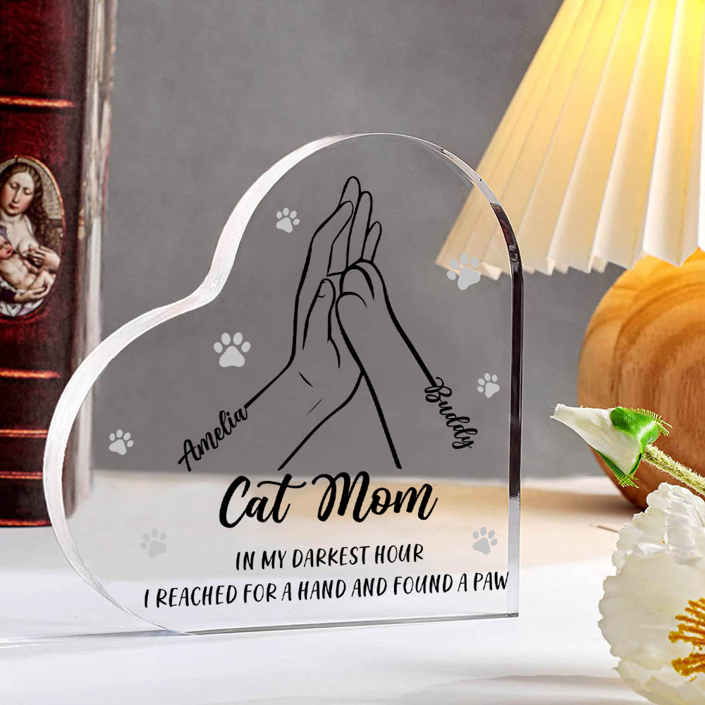 Personalized Acrylic Heart Keepsake Custom 2 Names & Text Dog/Cat Paw Ornaments Gifts for Mother/Father/Pet Lovers