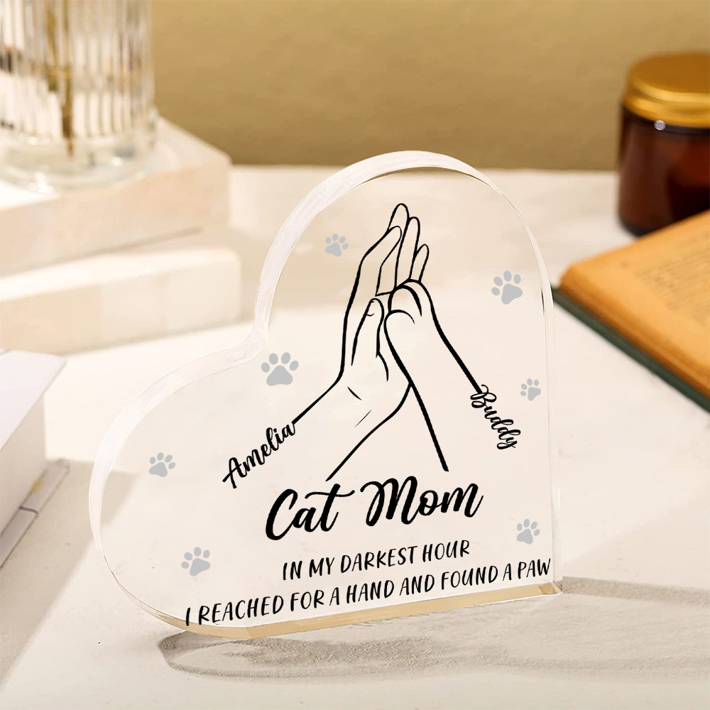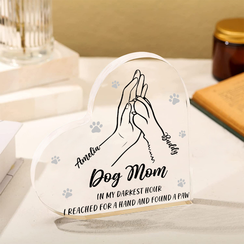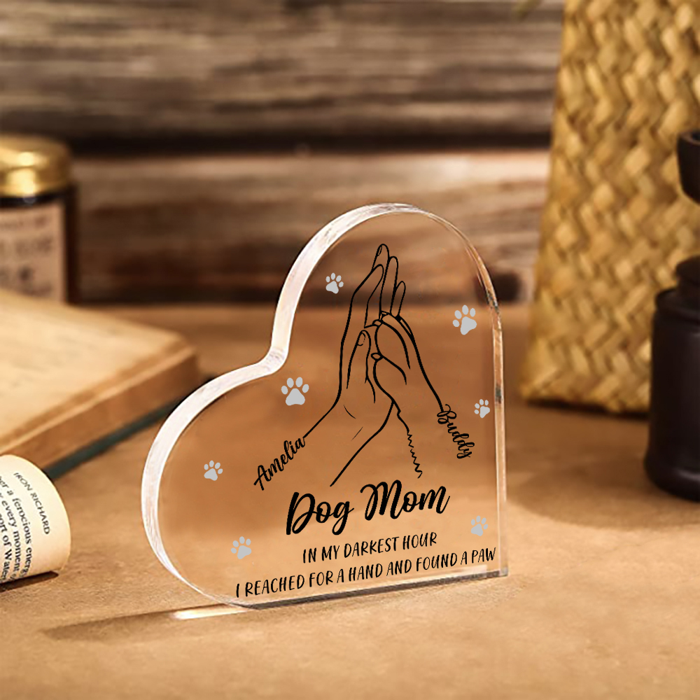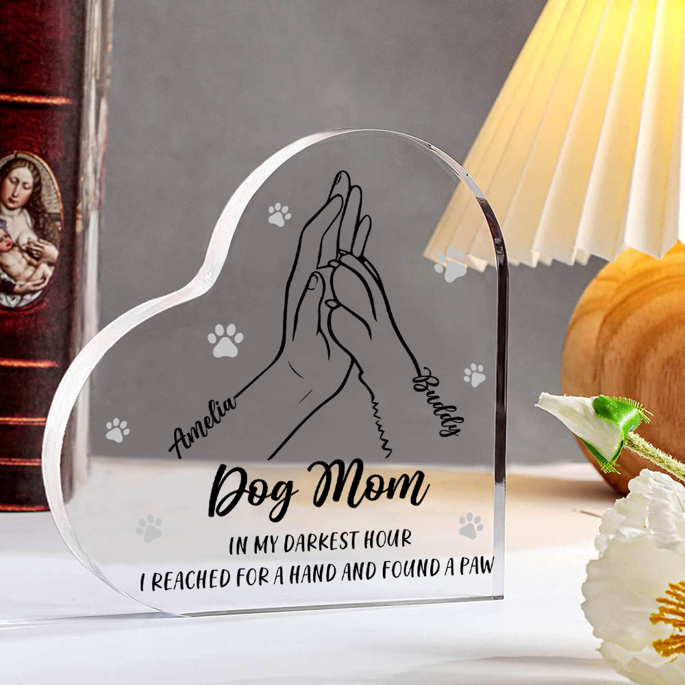 Personalized Acrylic Heart Keepsake Custom 2 Names & Text Dog/Cat Paw Ornaments Gifts for Mother/Father/Pet Lovers