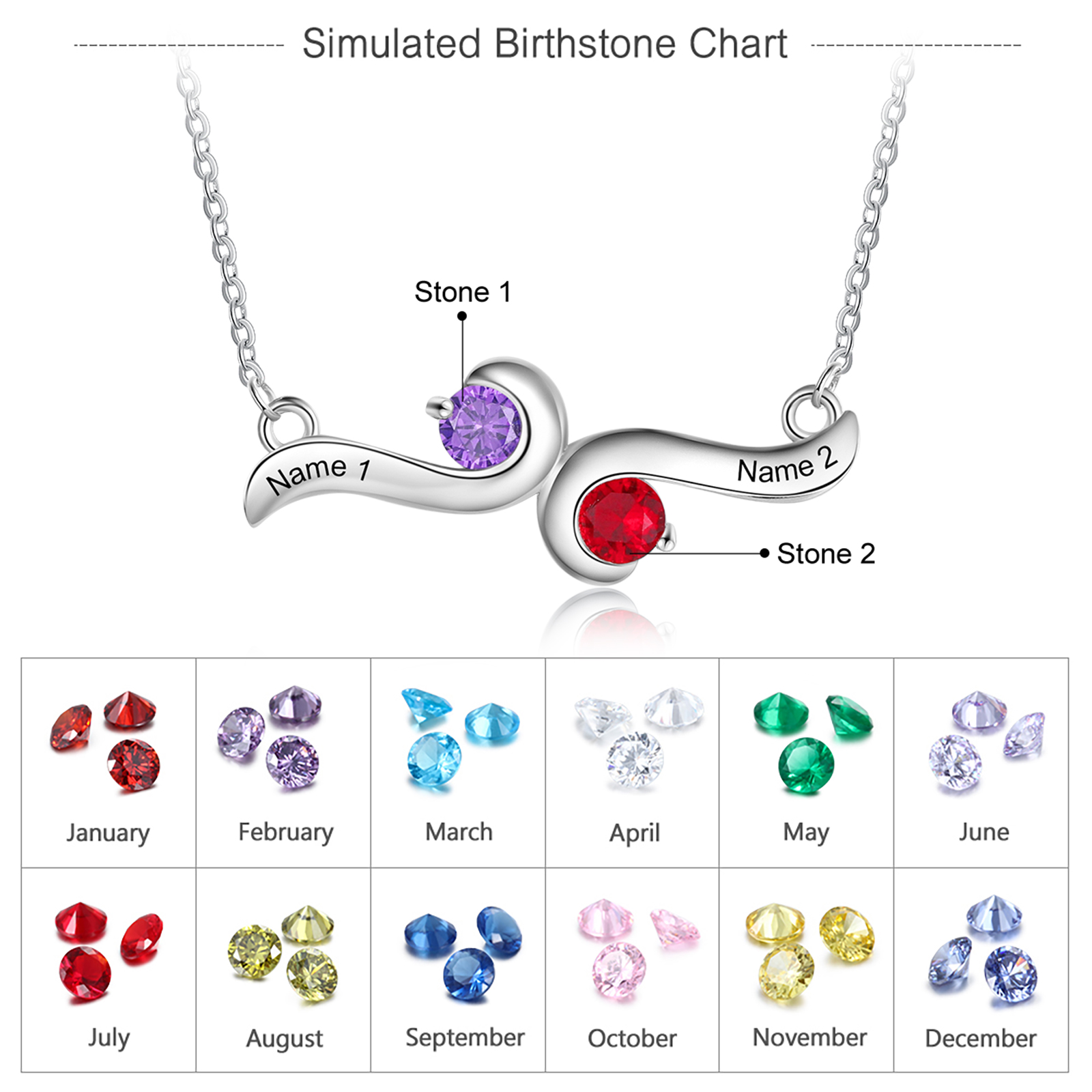 Personalized Birthstone Necklace Engraved 2 Name Family Necklace
