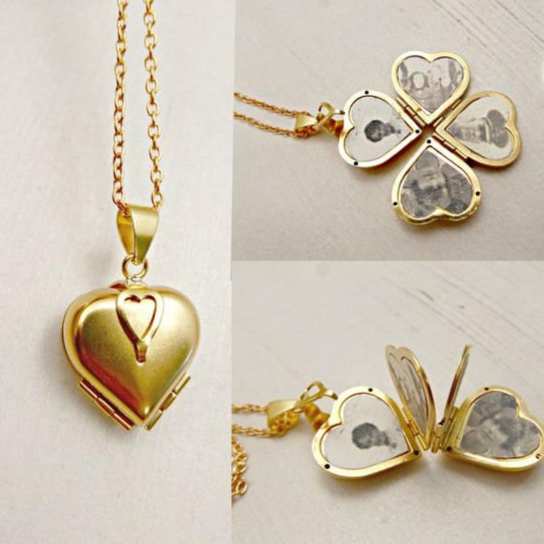 Personalized Heart Photo Necklace Folding Vintage Locket Necklace for Mother