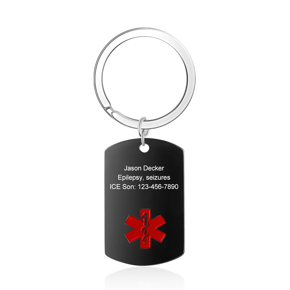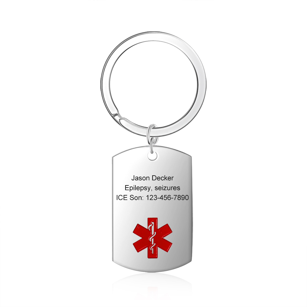 Personalized Medical Alert Keychain ID Keychain Custom Texts Keyring Stainless Steel Gifts