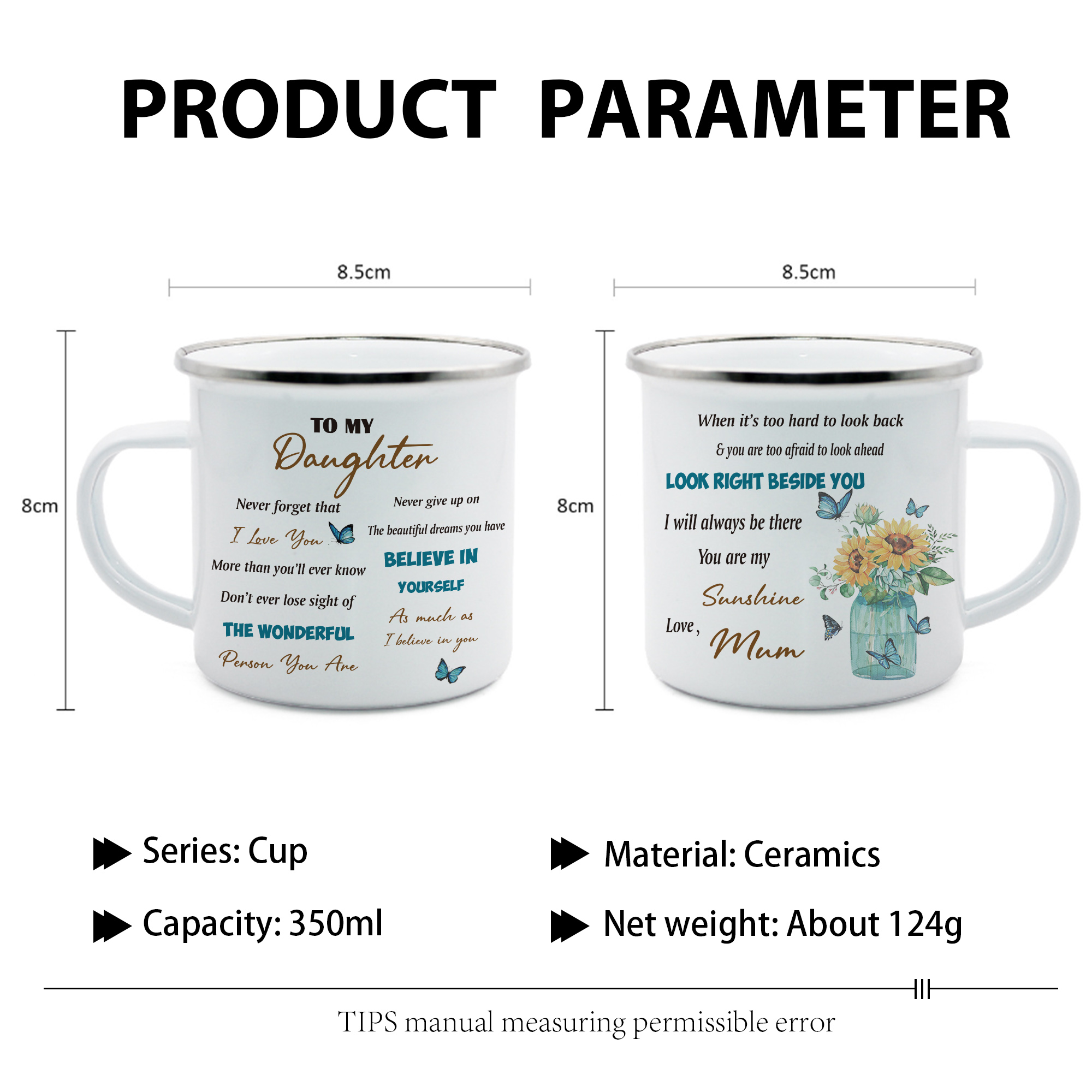 To My Daughter Enamel Mug Mum to Daughter Sunflowers Cup - Look Right Beside You I Will Always Be There