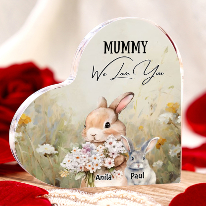 2 Names - Personalized Acrylic Heart Keepsake Custom Text Bunny Family Ornament Gift for Mother/Grandma
