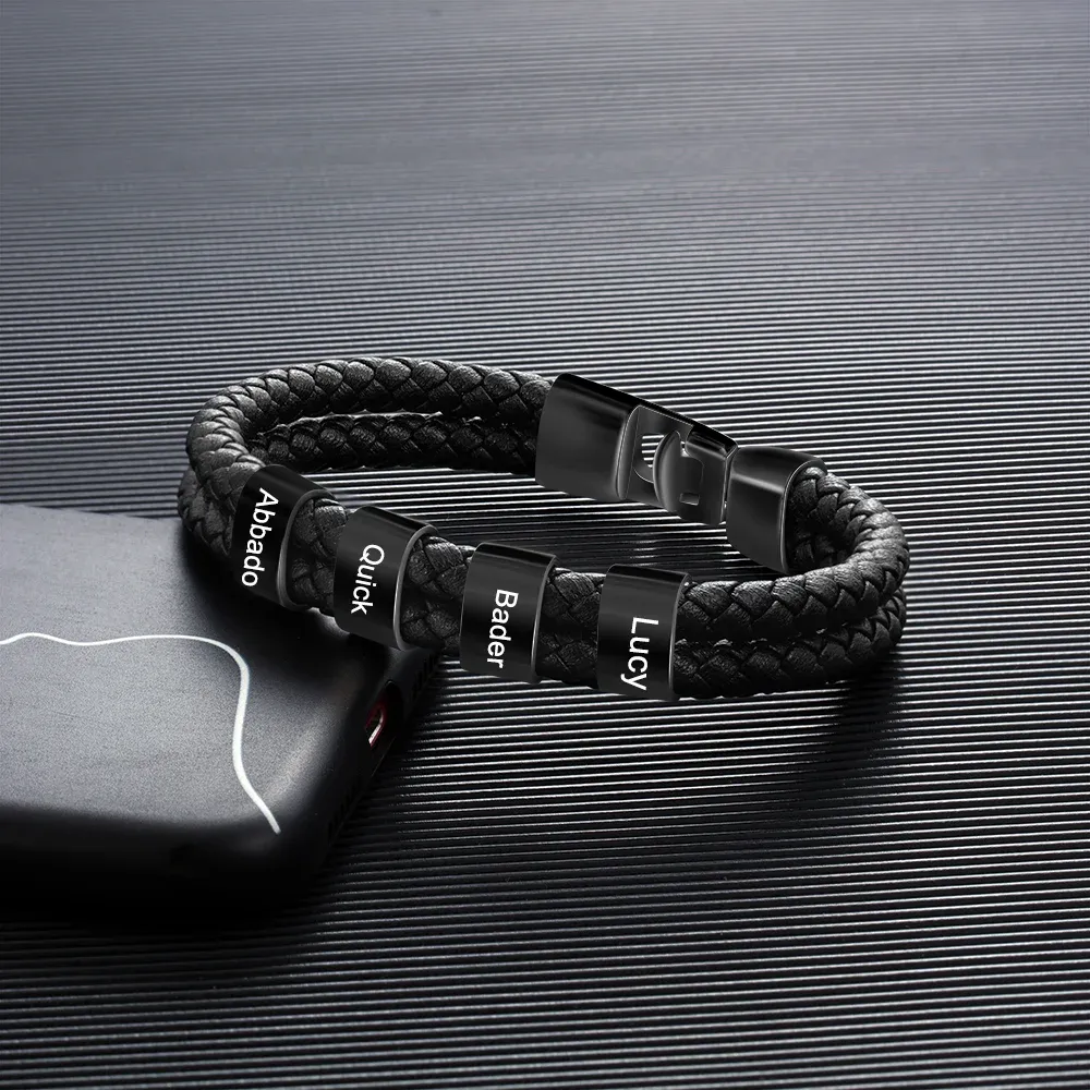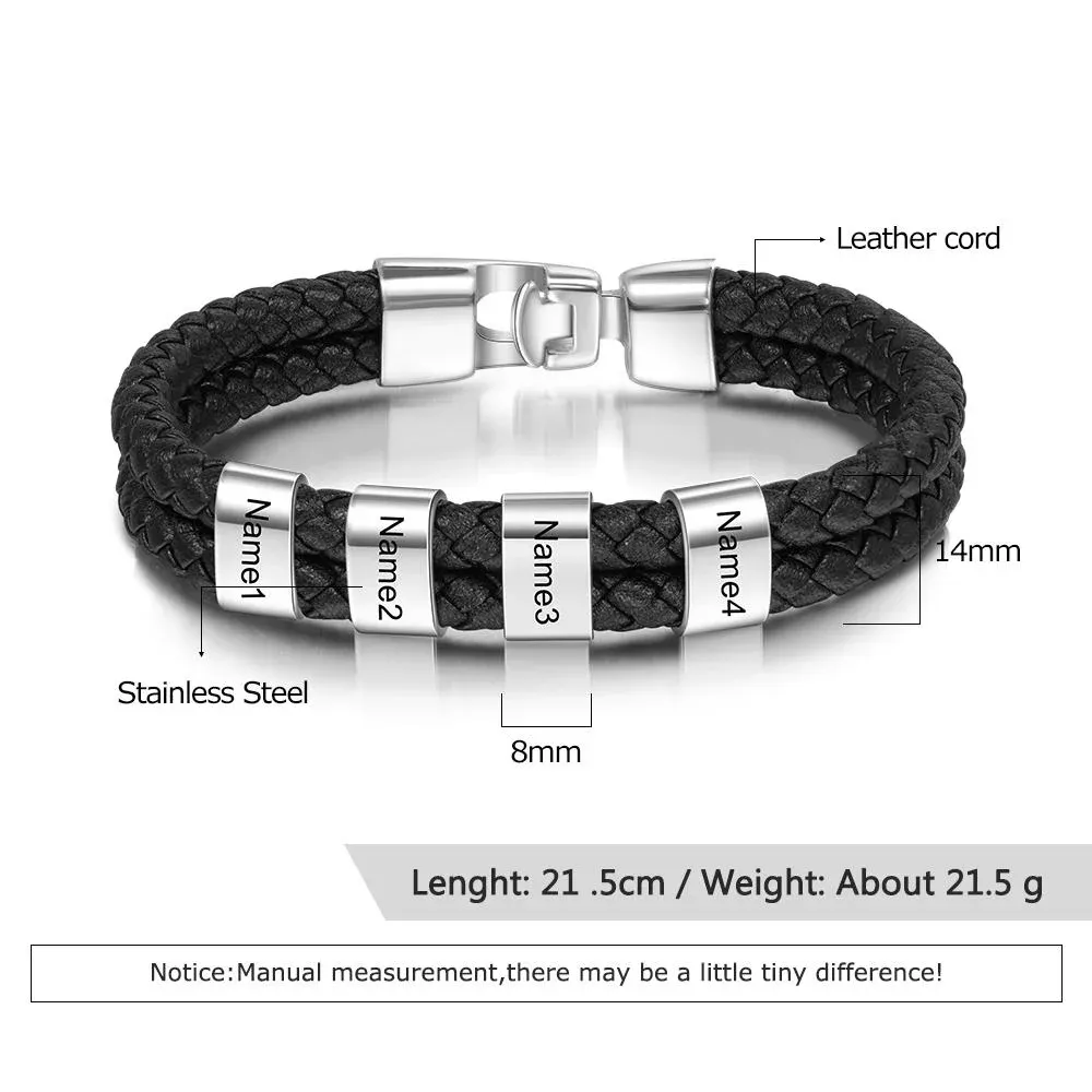 Men Leather Bracelet with 4 Bead Custom Two Layers Bracelet Black Gift To My Man