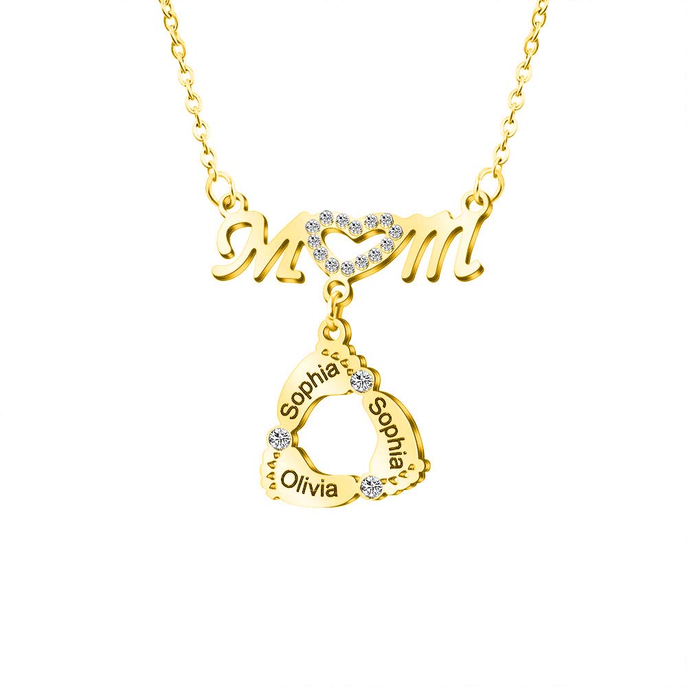 Mom Necklace with Baby Feet Pendant Custom 3 Birthstones and Names Family Gift