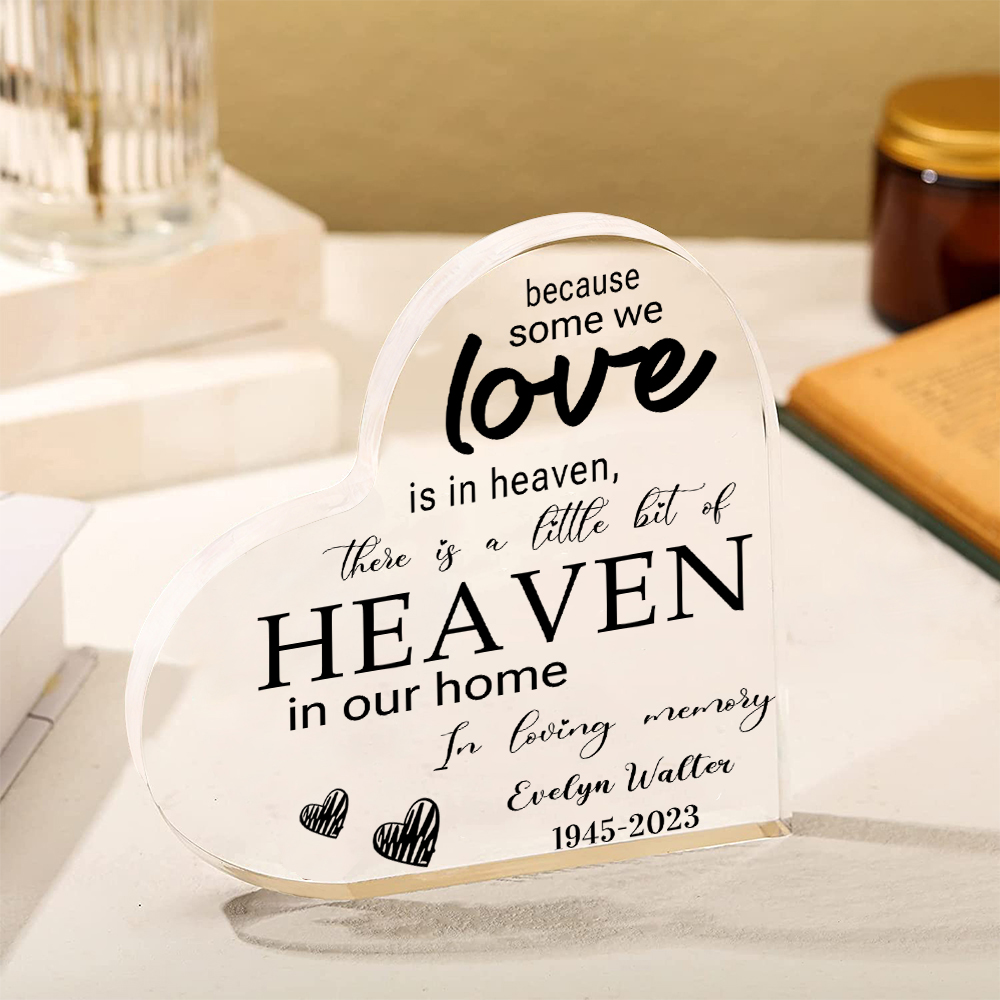 Personalized Acrylic Heart Keepsake Memorial Acrylic Plaque Memorial Gift - Because Some We Love Is In Heaven, There Is A Little Bit Of Heaven In Our Home